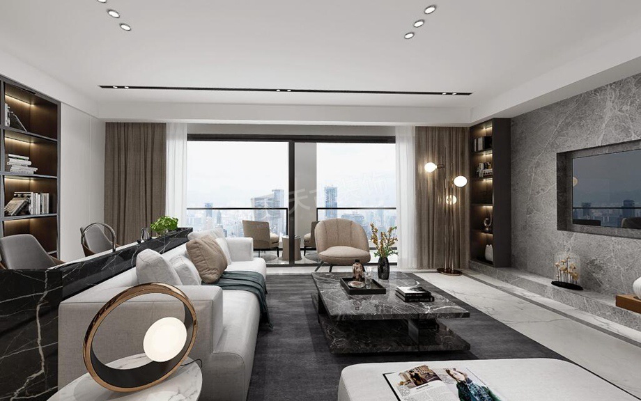 壹号湖畔大平层装修,现代简约风格设计,渝北天古装饰