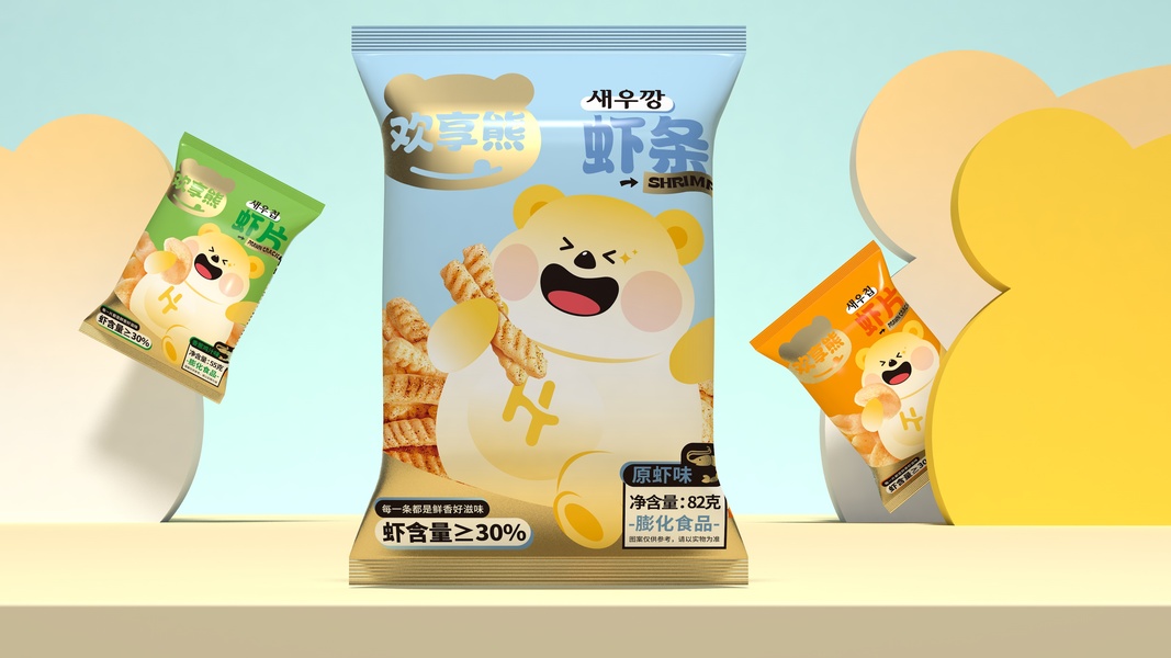 欢享熊-【虾片】【虾条】膨化食品包装设计