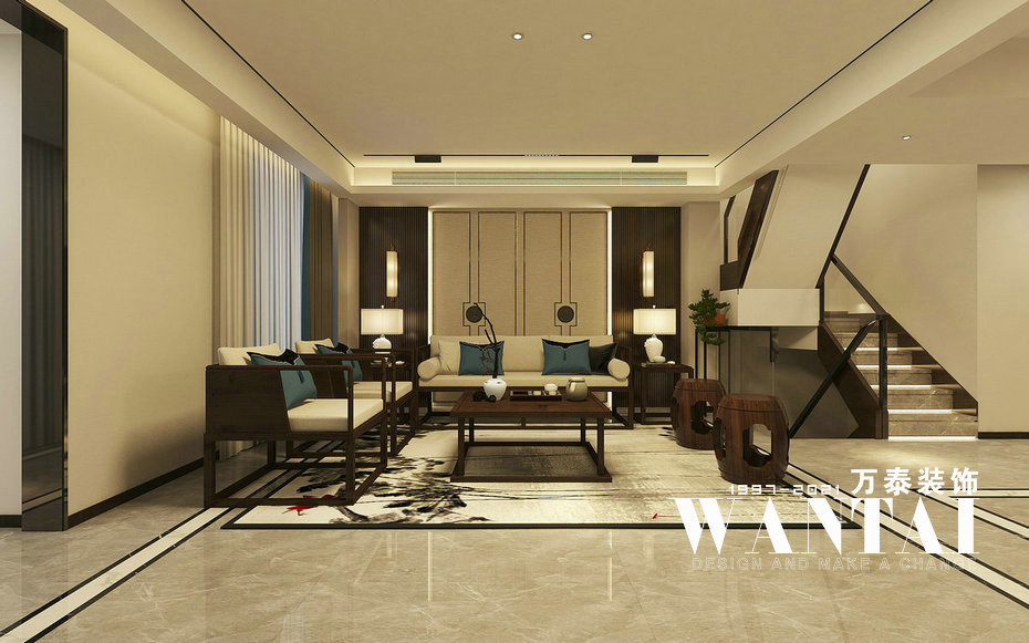 泰安万泰装饰 | 半山九里168m²底跃新中式风装修效果图