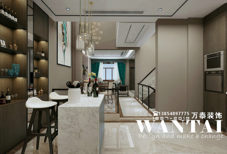 泰安万泰别墅装修|国山墅300平别墅港式风格装修效果图