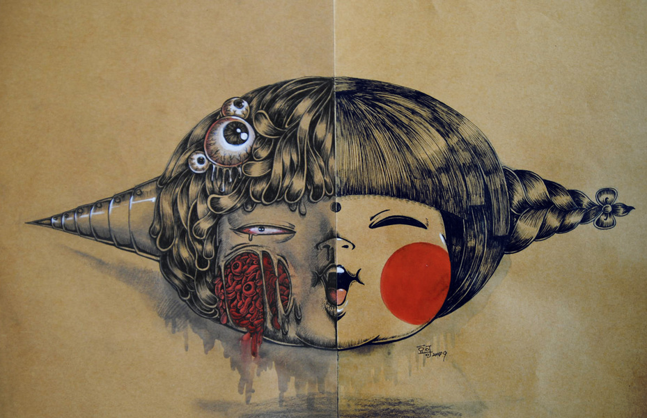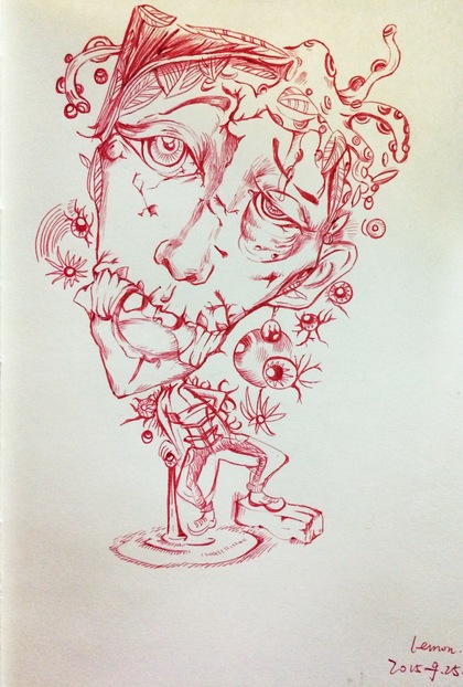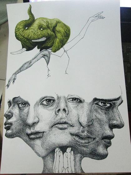 “达摩流浪者”系列作品三号——《象媒》 15小时 潜意识推画 手绘过程