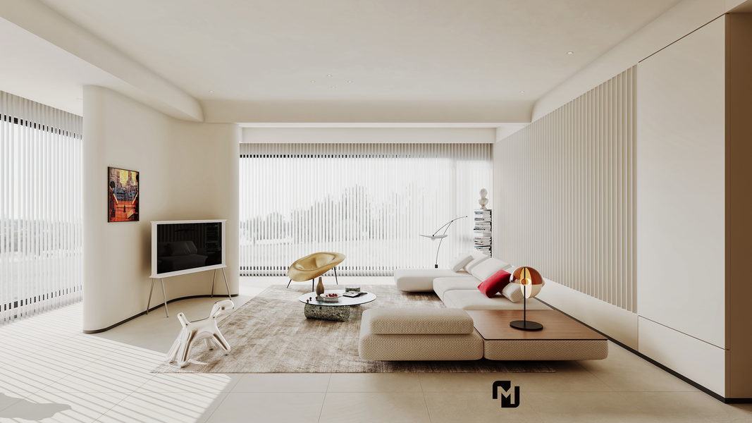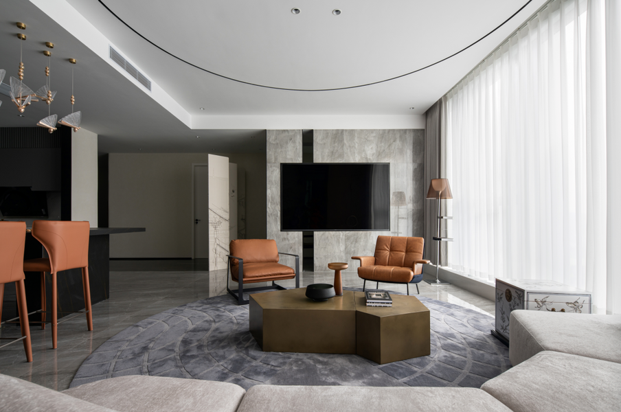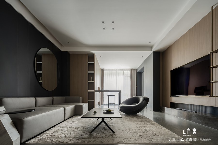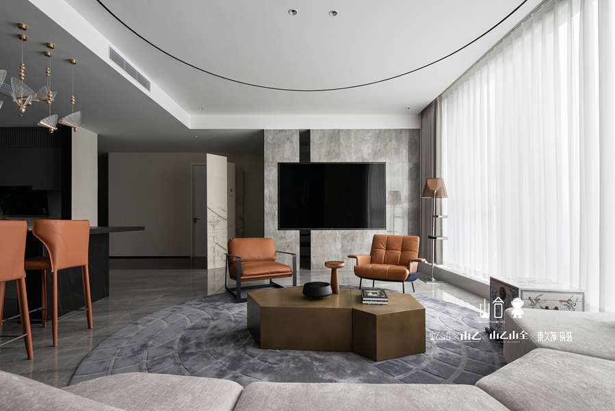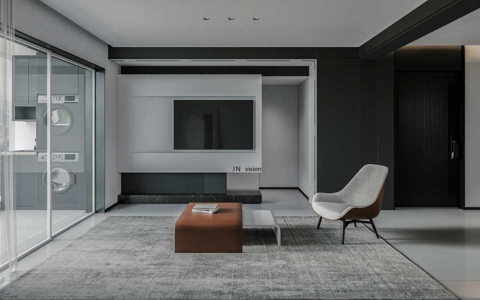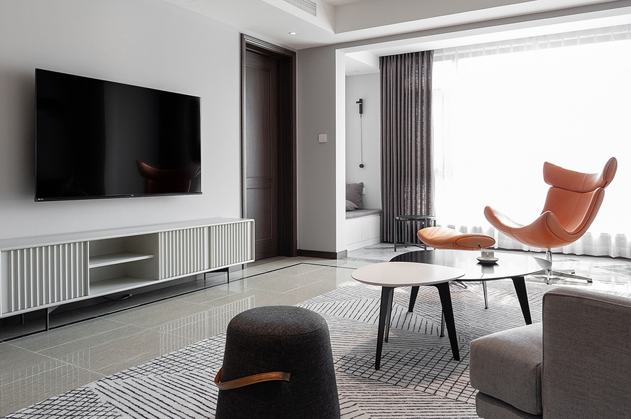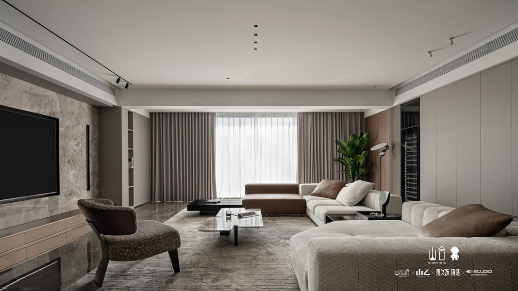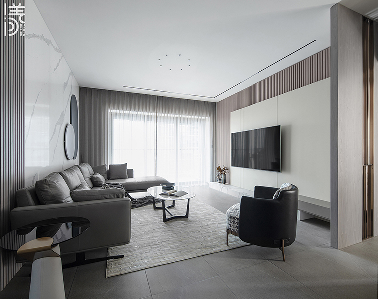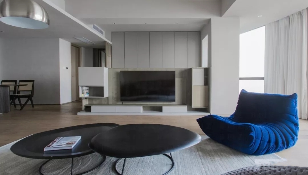 148平现代极简装修,木格栅+造型柜电视墙,超有设计感