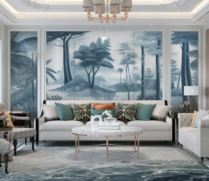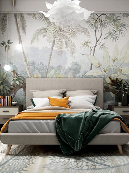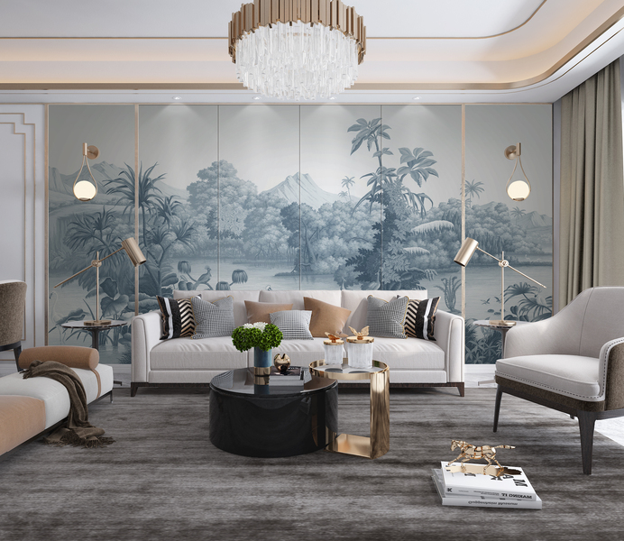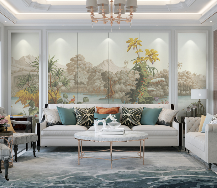 北欧简约居家风本视艺制墙面彩绘 纯手工彩绘