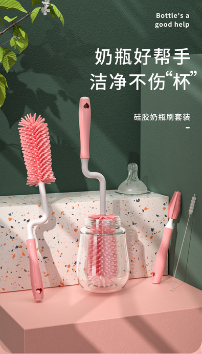 千毛硅胶奶瓶刷杯刷新生婴儿专用奶嘴吸管清洗刷子