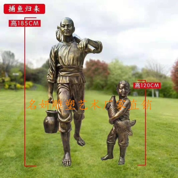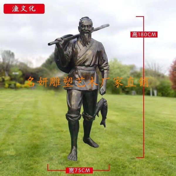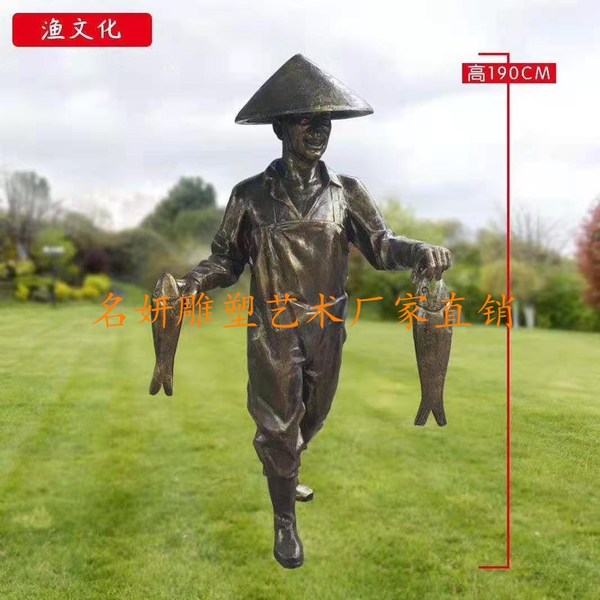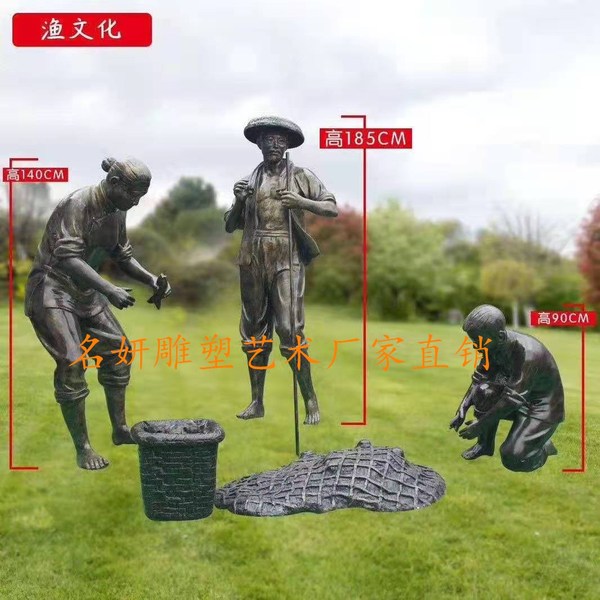 玻璃钢渔文化景观小品雕塑大型仿铜人物雕像捕鱼造型