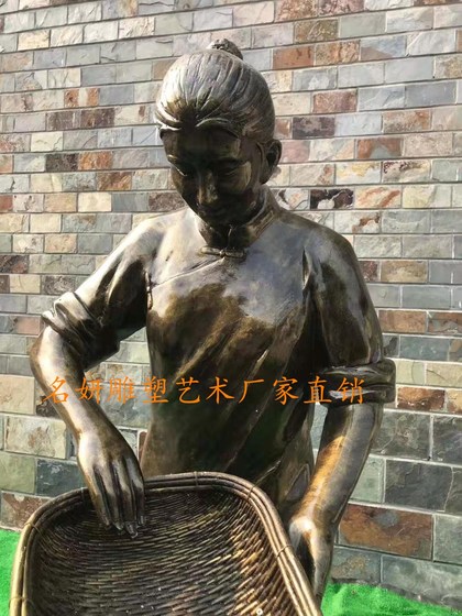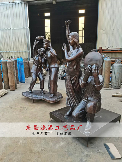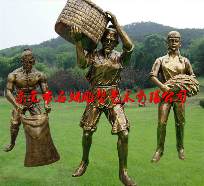 高度公路服务景区的玻璃钢农耕仿古铜人像雕塑摆件