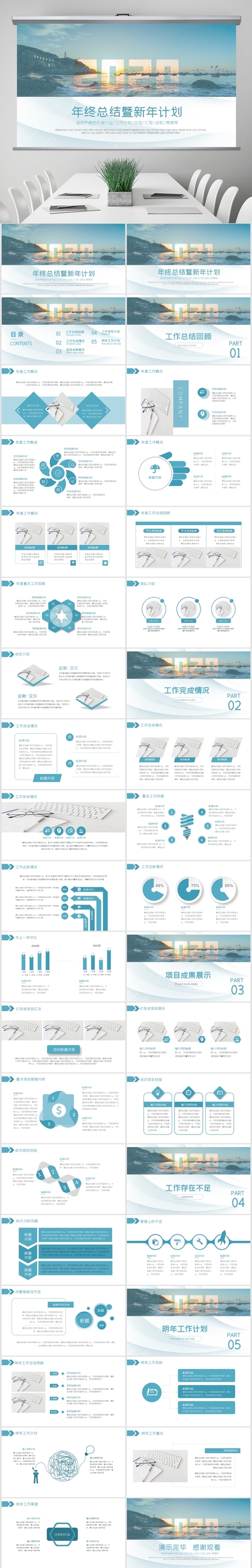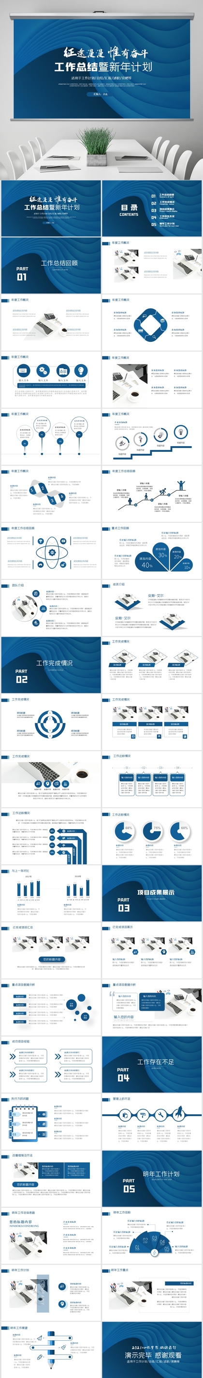 2021蓝色励志简约商务风年终总结汇报计划ppt模板