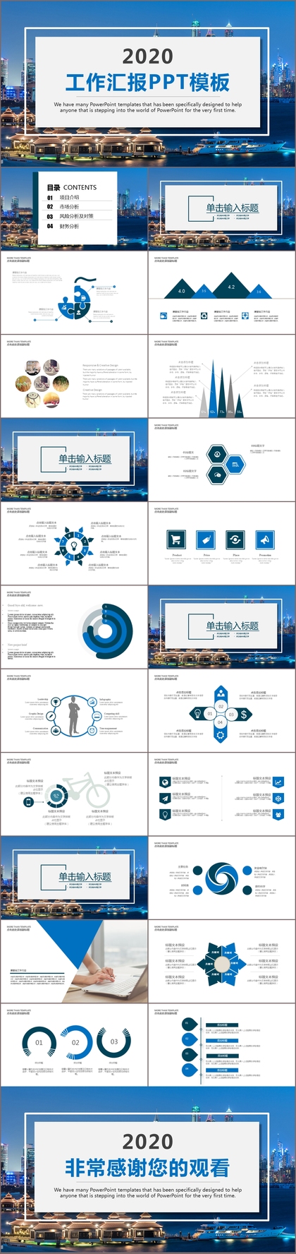 蓝色城市宏伟夜景图工作总结汇报PPT模板