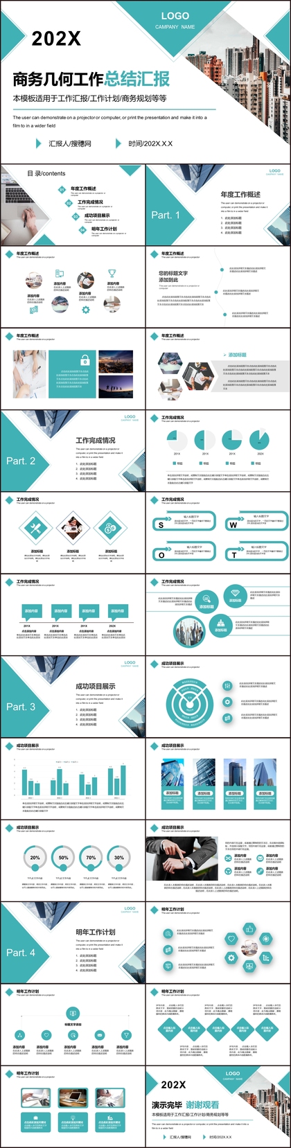 高端城市商务几何体年度部门工作计划总结汇报PPT模板