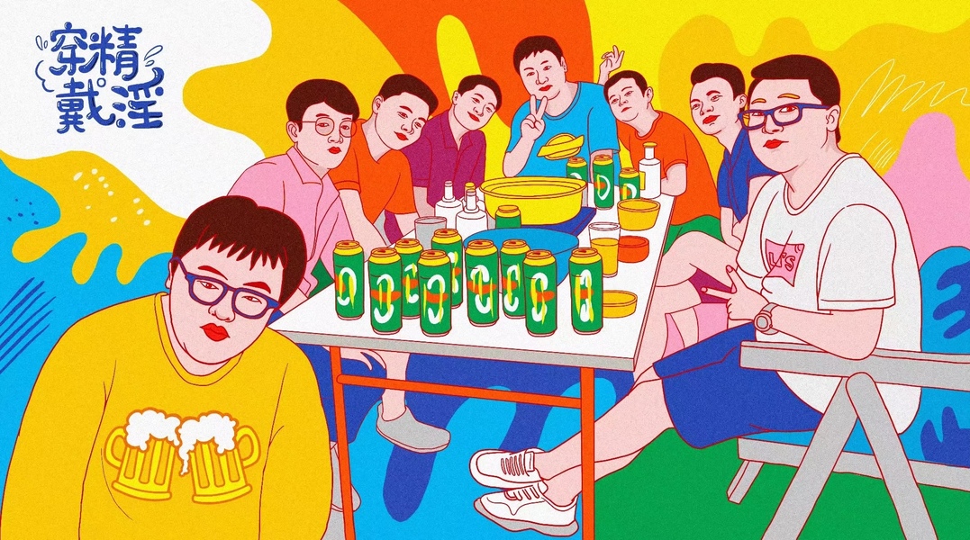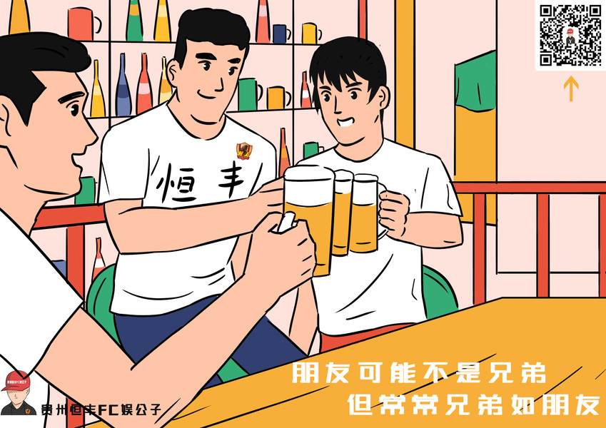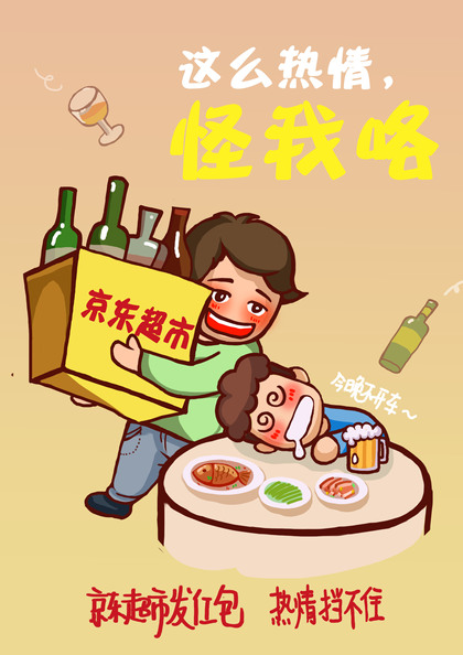 一张我和朋友一起喝酒的手绘