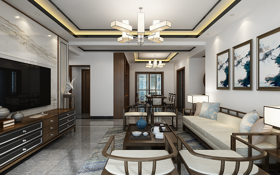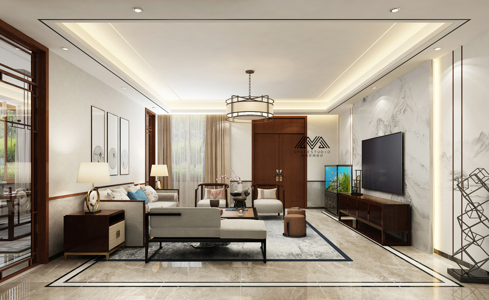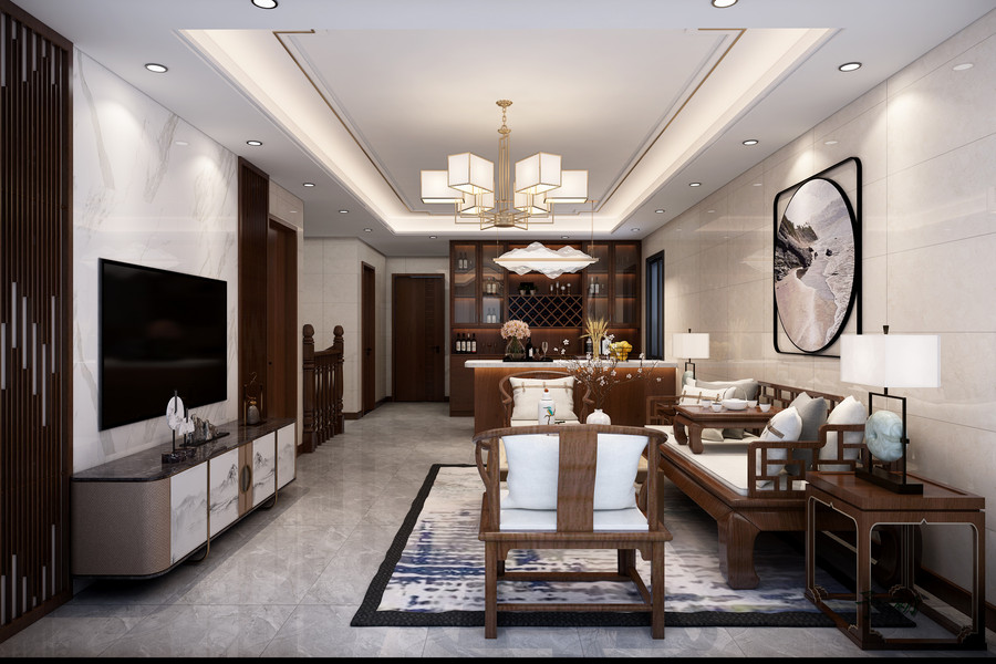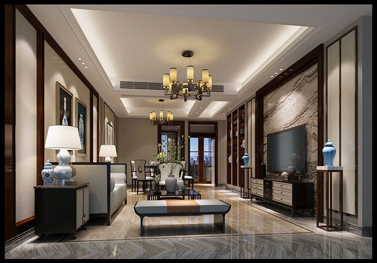 【鑫界王府装修设计】鑫界王府168平新中式风格效果图欣赏