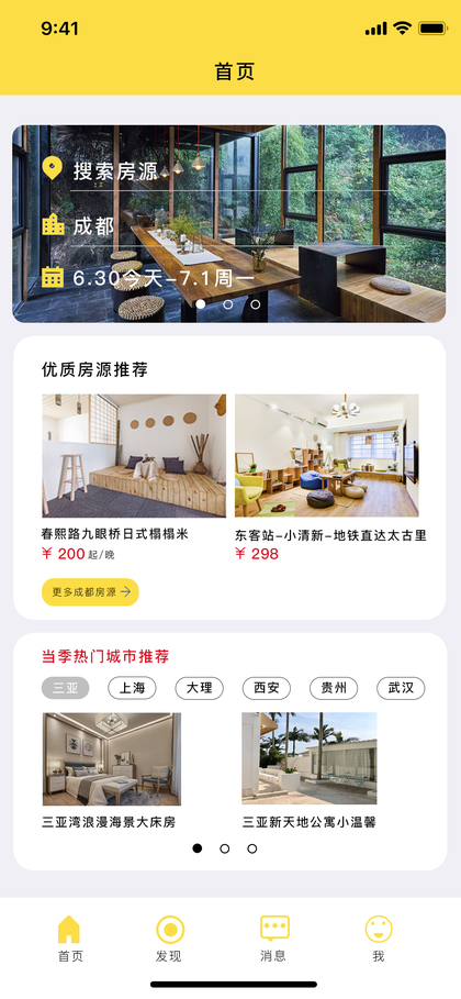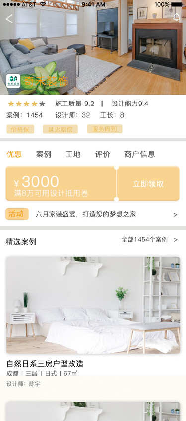 黄色调装修APP小程序页面设计