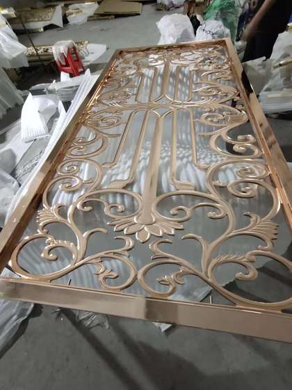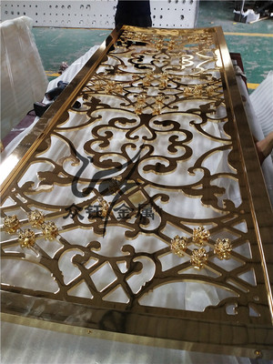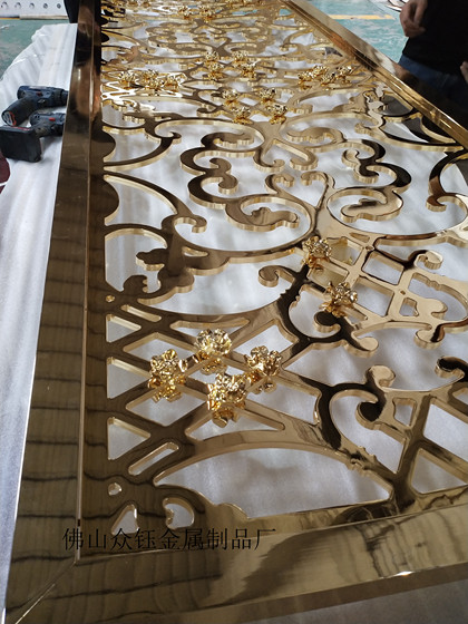 KTV大厅黄钛金无指纹不锈钢屏风 珠宝店雕花屏风