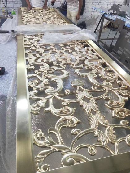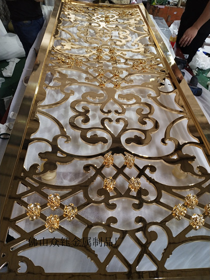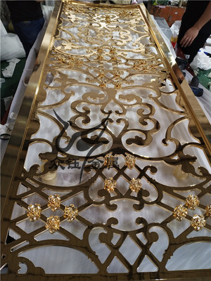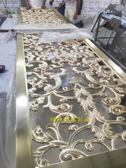 精雕细琢铝镀铜雕花屏风,铝雕花格
