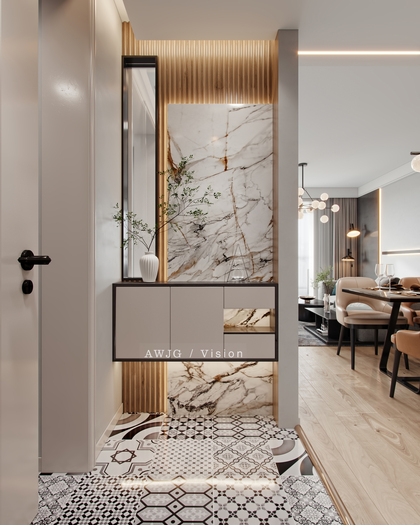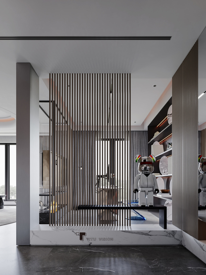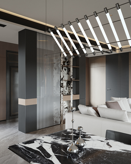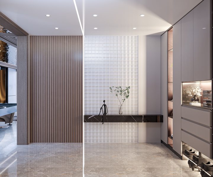 143㎡现代风格大户型装修,大理石+原木极致美感