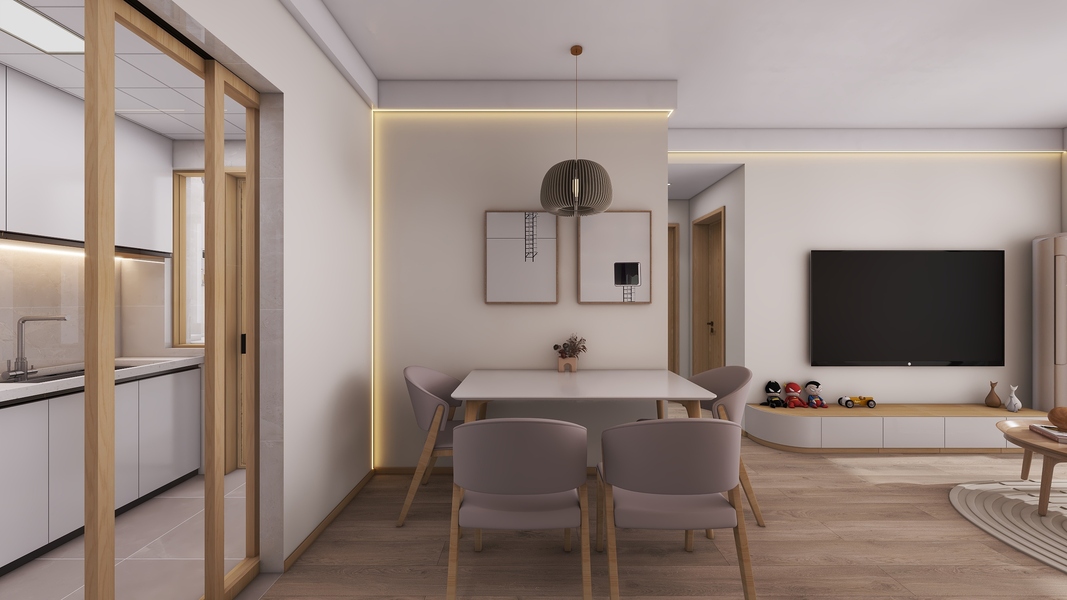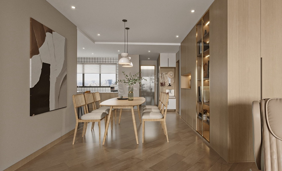 虎溪花园大平层装修,日式原木风设计效果图,天古装饰