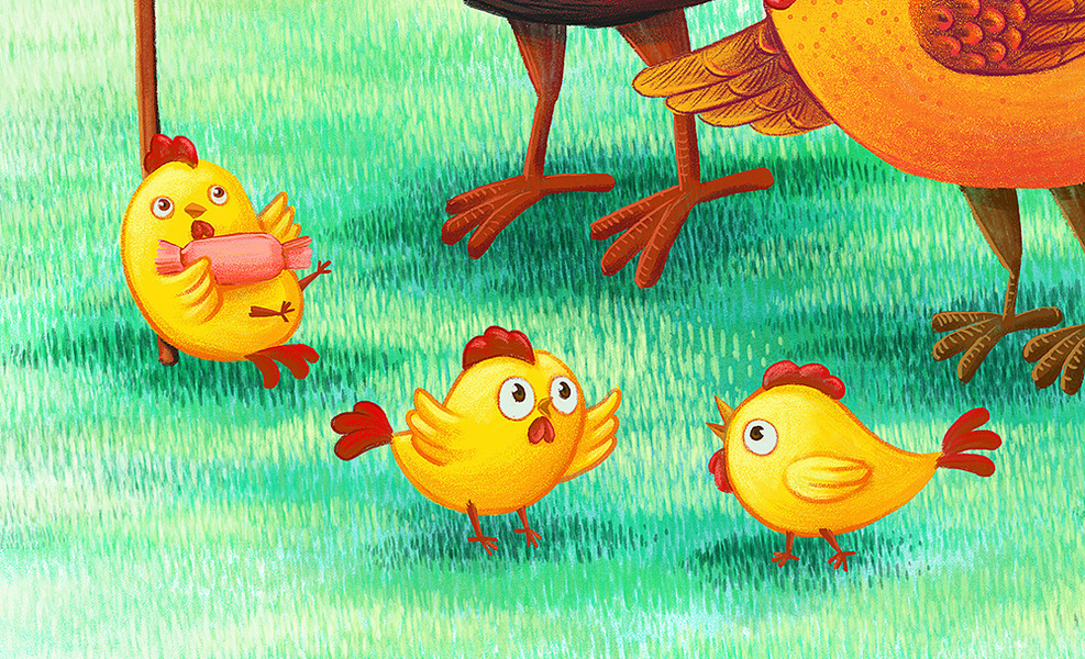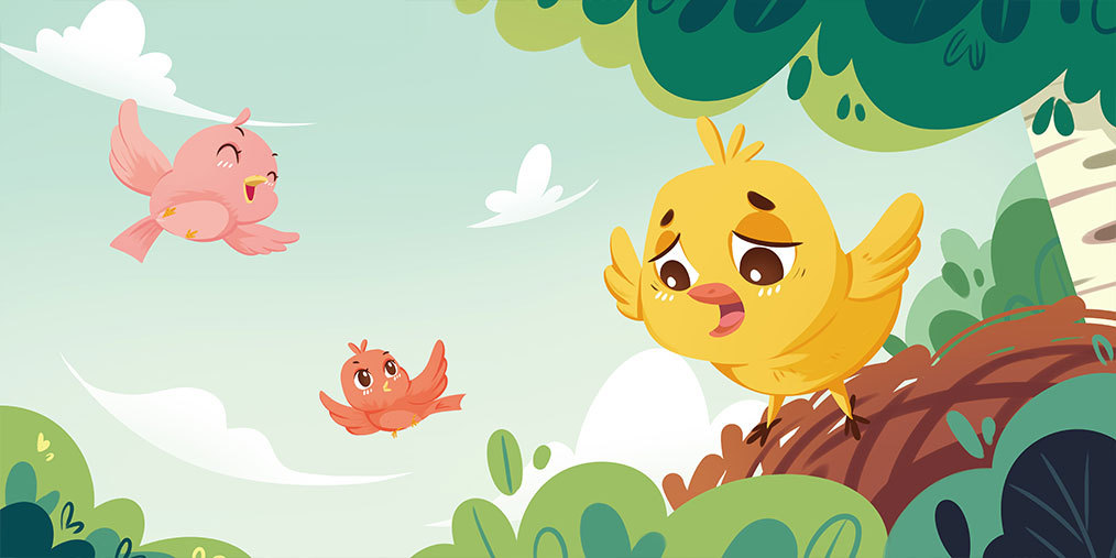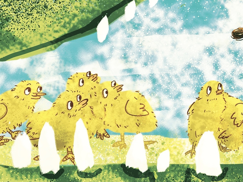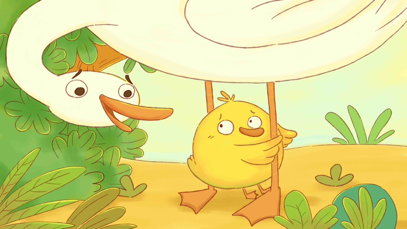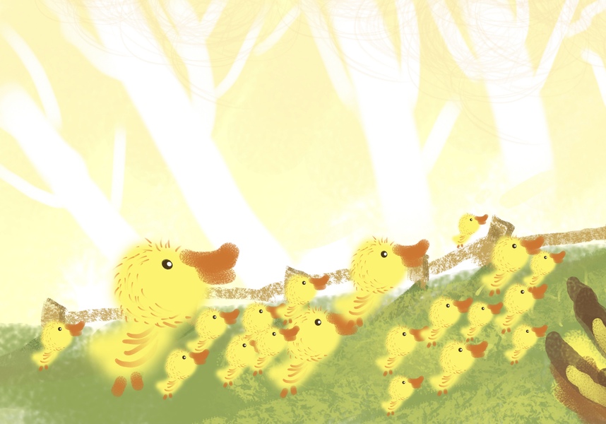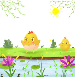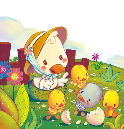 可爱清新插画少儿杂志小鸭子爬墙过河