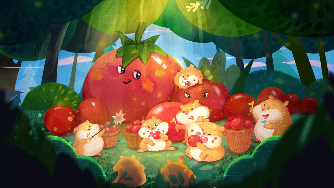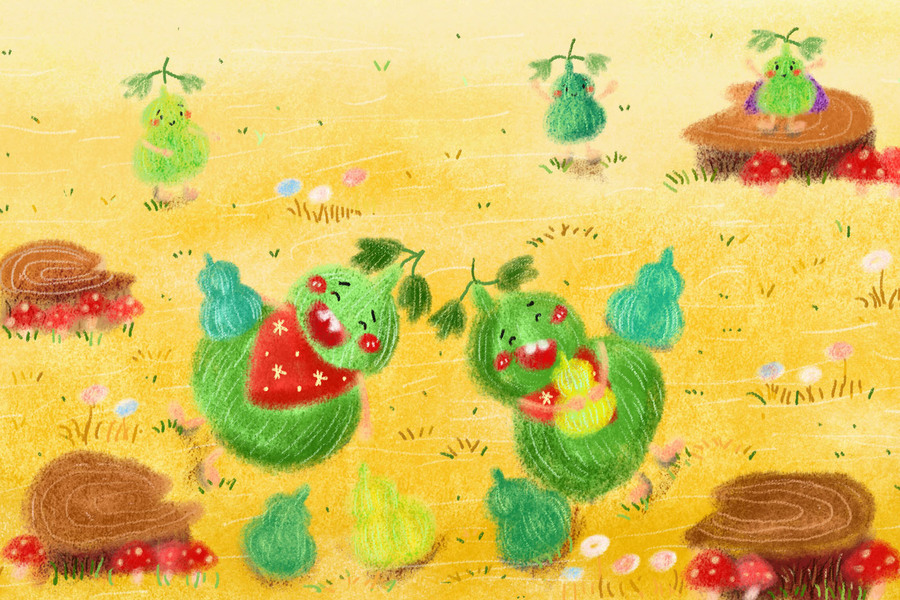 儿童插画童话绘本故事板绘森林里可爱的葫芦精灵