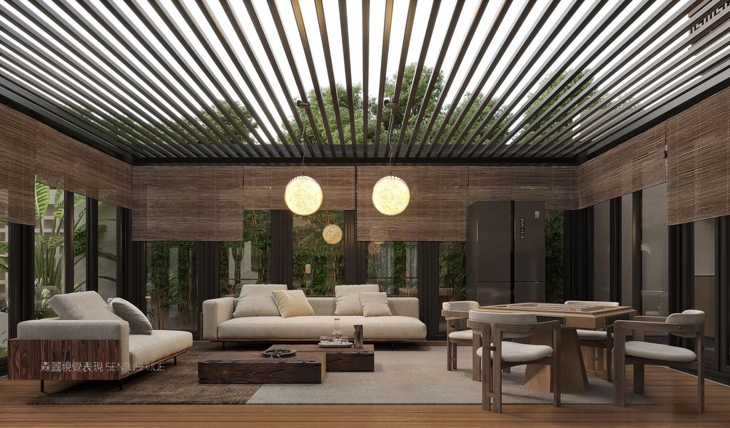 花园——现代休闲铝合金翻转百叶亭