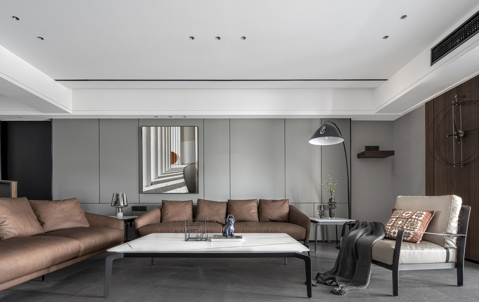 150㎡现代都市简约风格大户型装修,大地色系温暖美宅