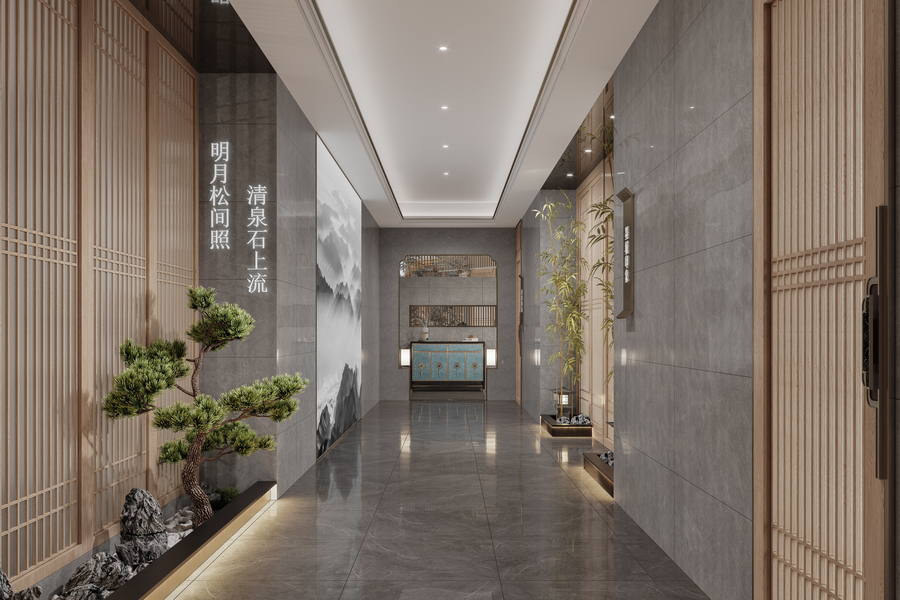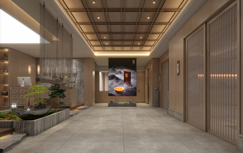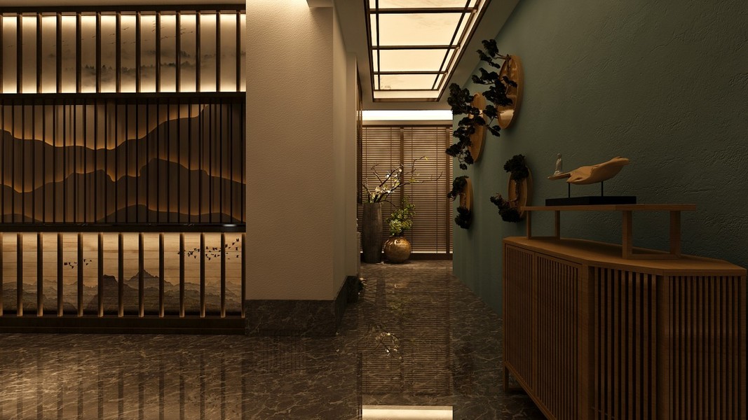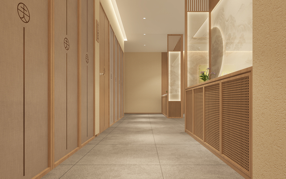 中式足浴大厅过道