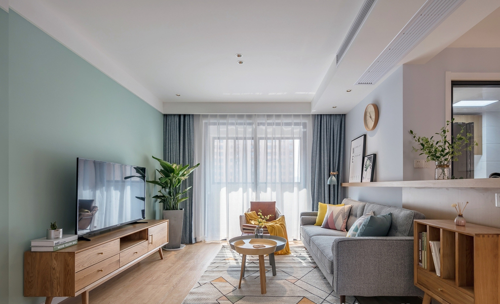沈阳兴邦装饰电话——95m²北欧风格,牛油果色系
