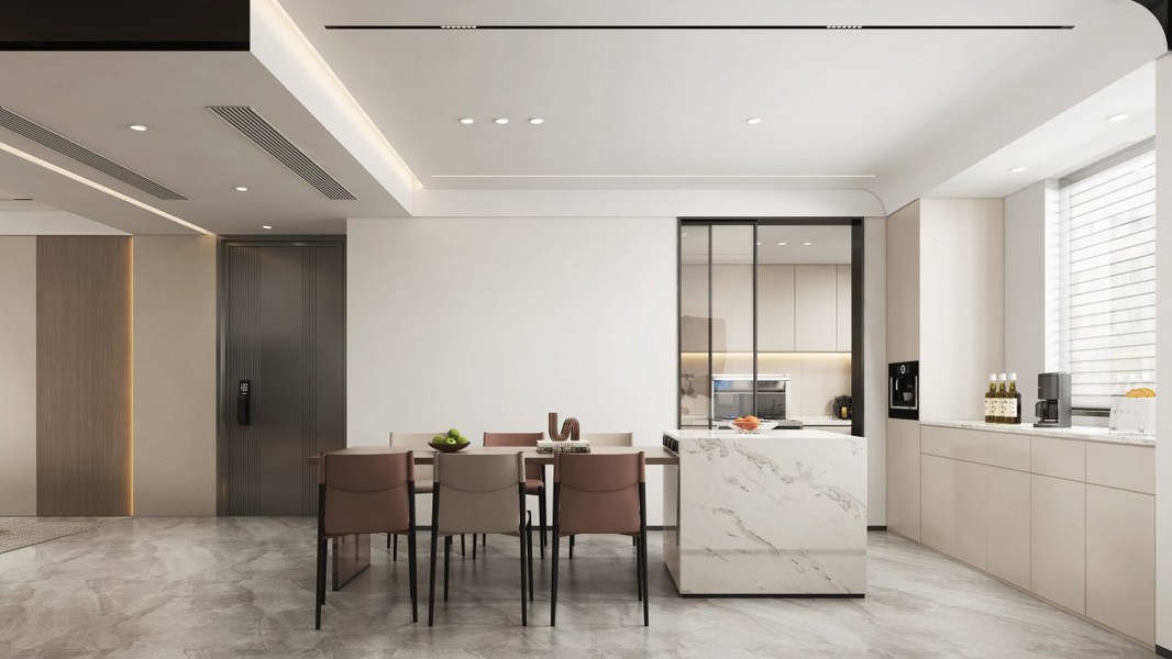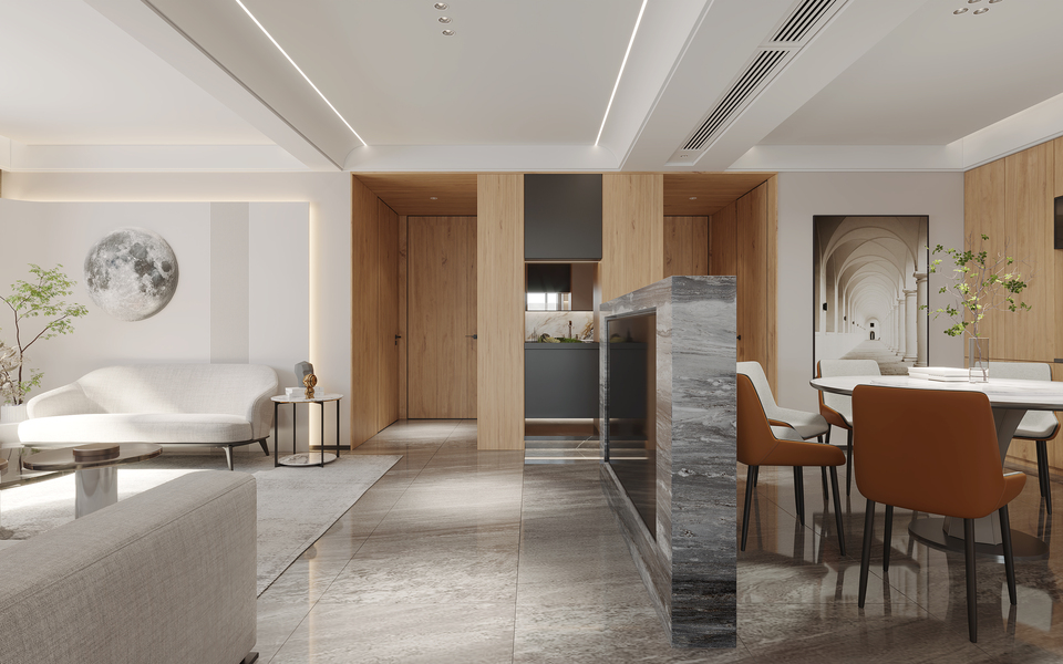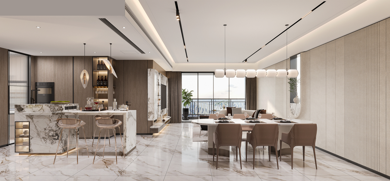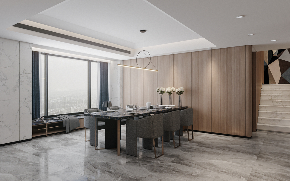 重庆龙湖舜山府大平层装修,简约意式现代风设计效果图