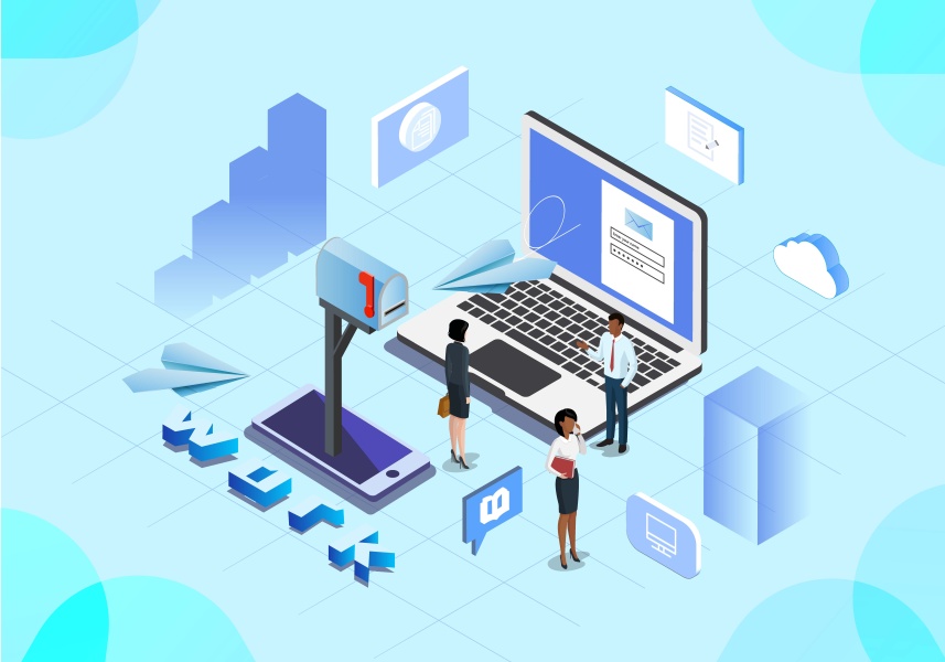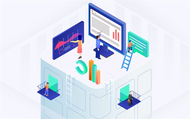 2.5D商业插画扁平化商务办公插画销售可视化数据插画