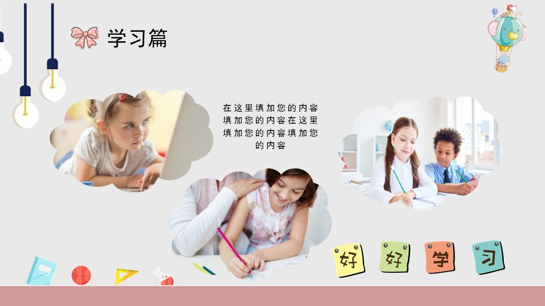 可爱卡通风学校期中期末教学总结PPT模板