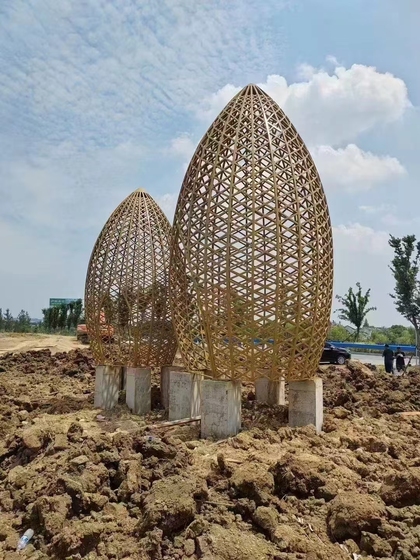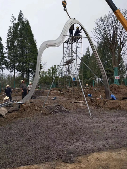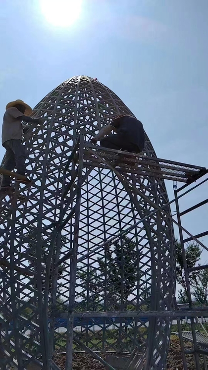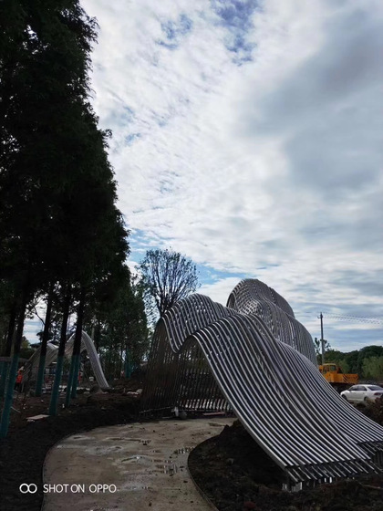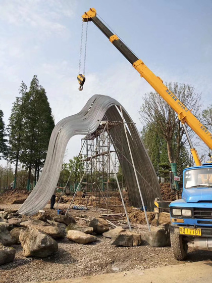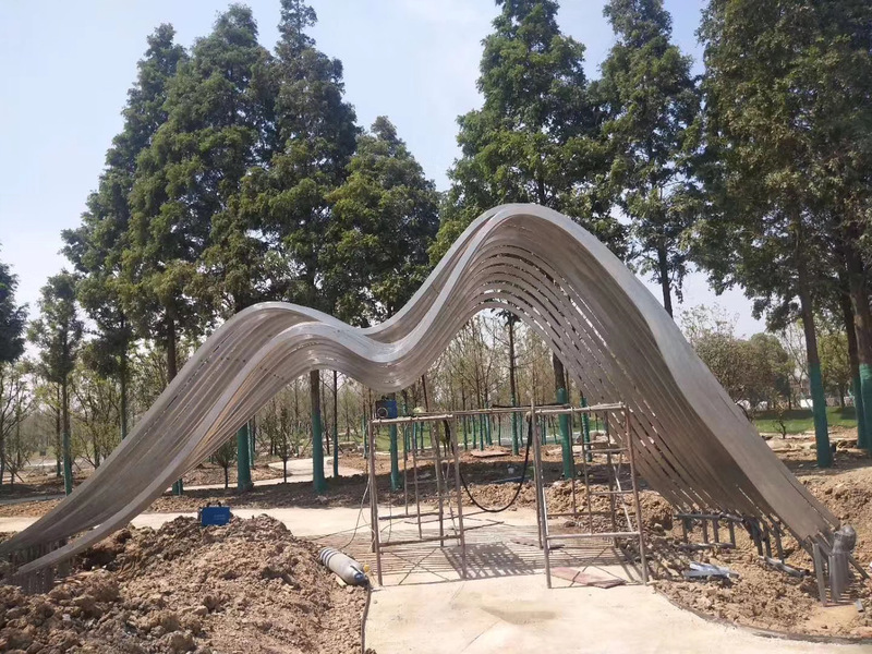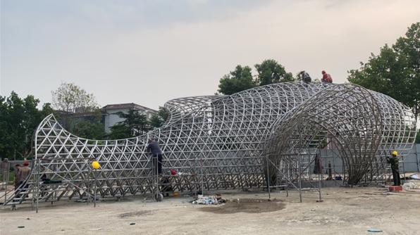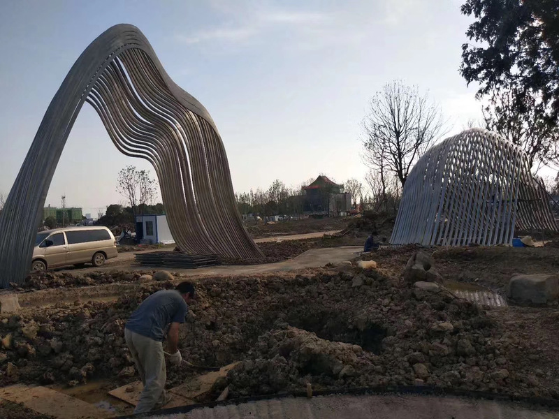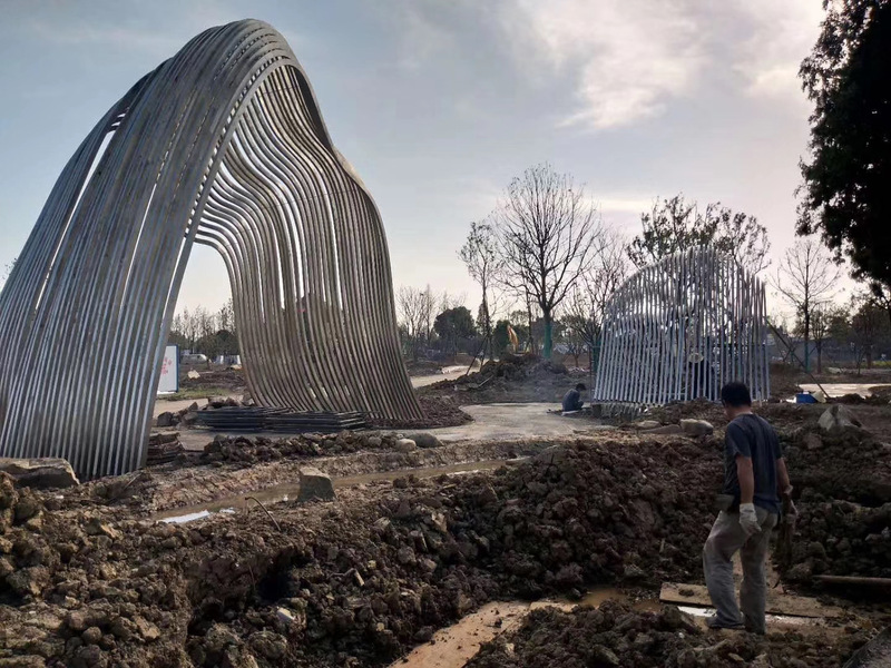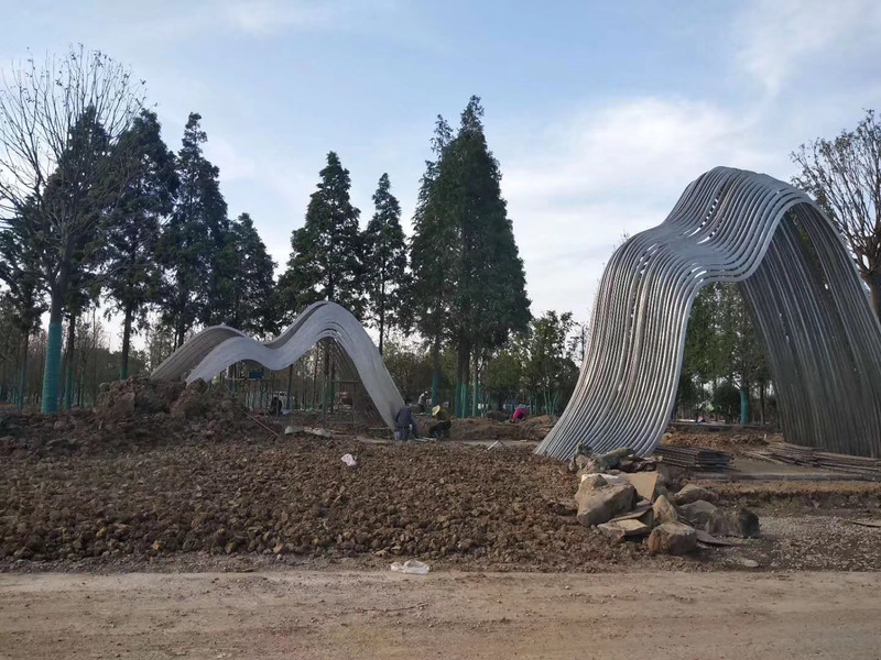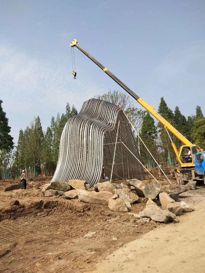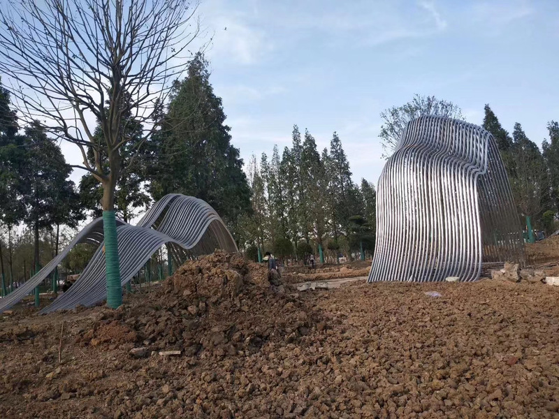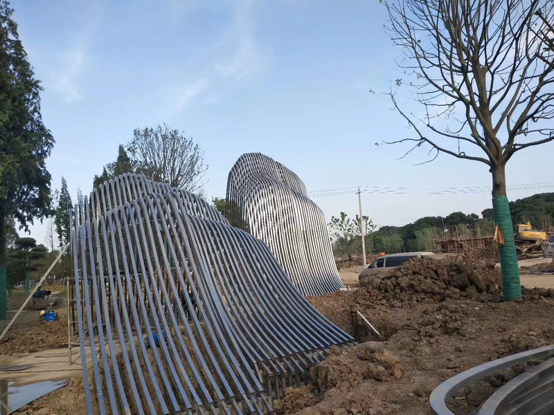 荆门-园博园-不锈钢假山⛰️制作-安装-过程展示