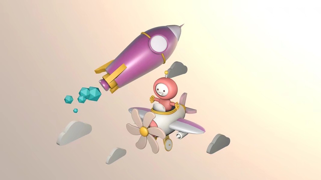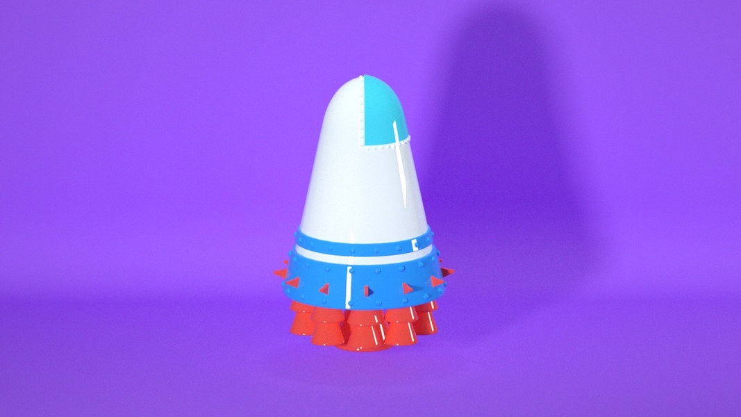 c4d小练习-卡通火箭发射动画