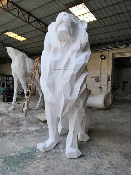定制玻璃钢防石头狮子雕塑酒店门口景观摆件形象吉祥物