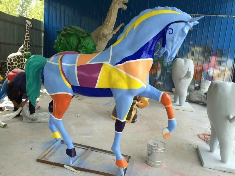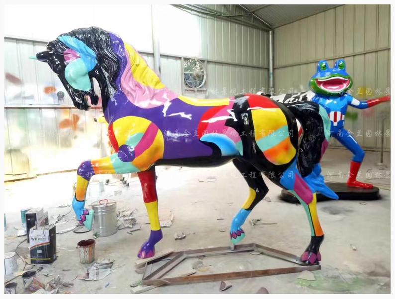 玻璃钢彩绘马雕塑仿真动物定制户外园林景观摆件