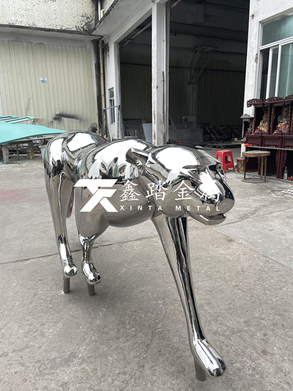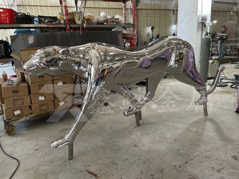 抽象艺术镜面不锈钢豹子雕塑欣赏到独特的魅力和韵味