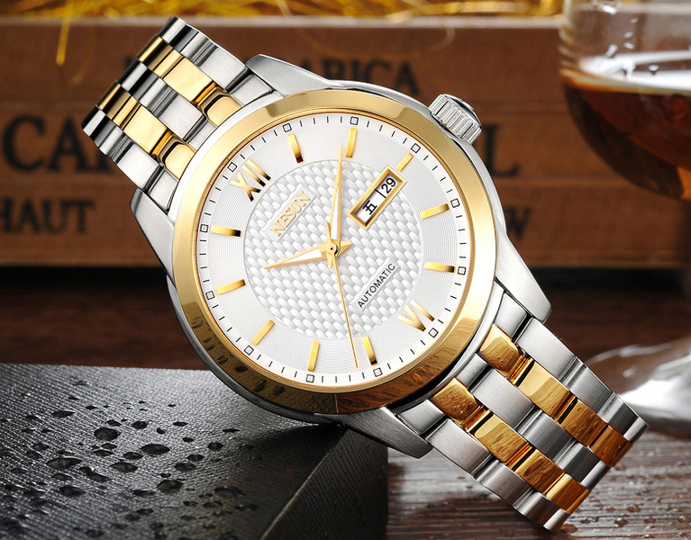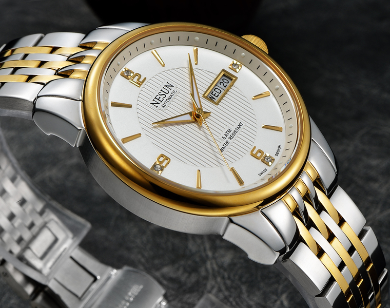 手表摄影/NESUN尼尚男士全自动机械手表精钢防水双日历
