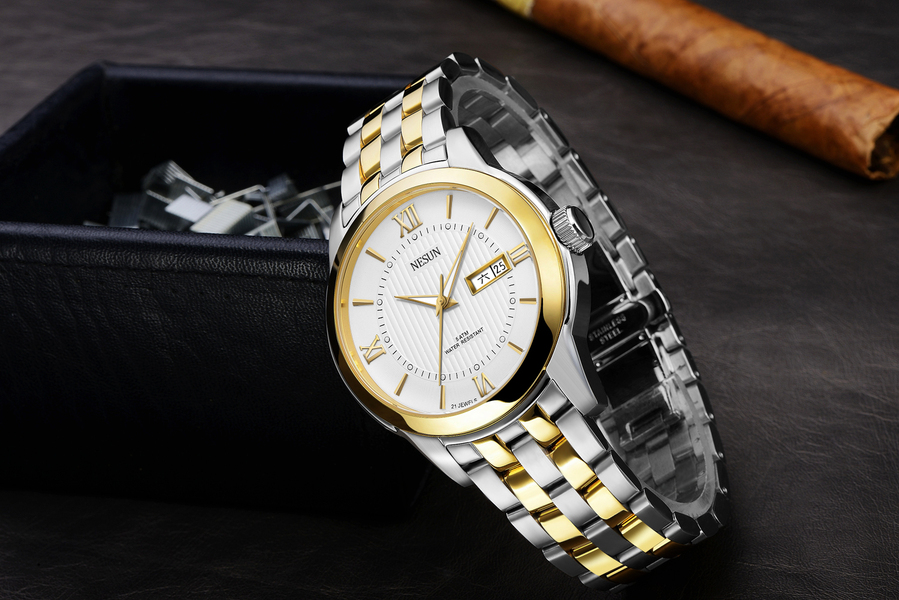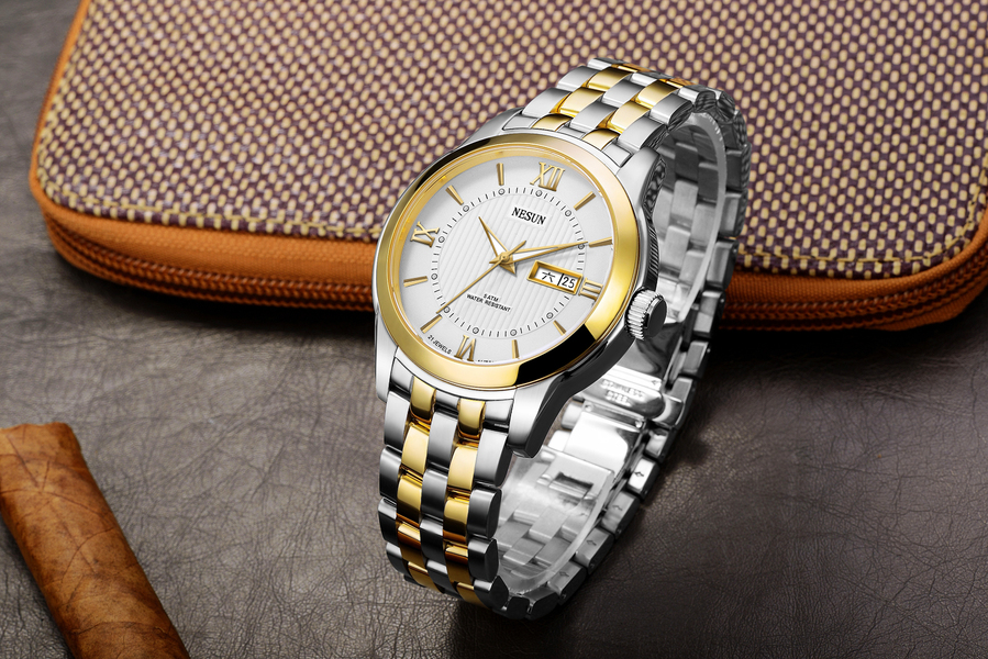 手表摄影/NESUN尼尚精钢防水夜光双日历男士商务手表