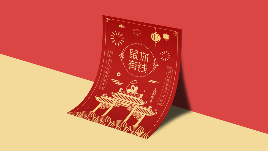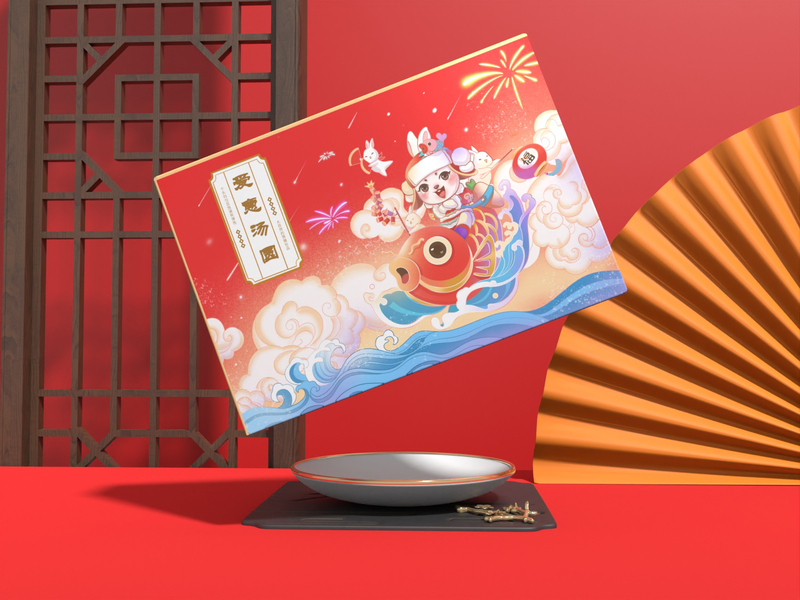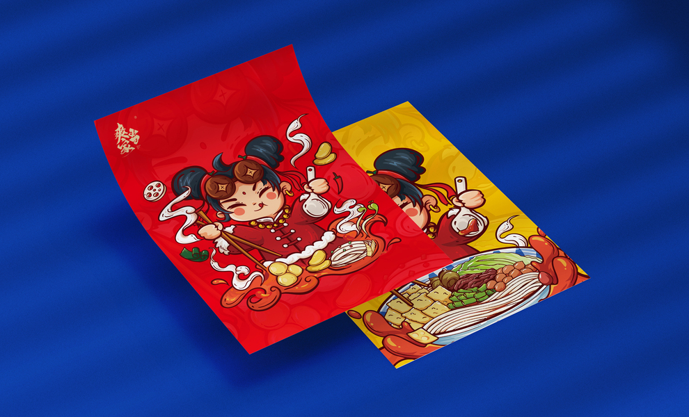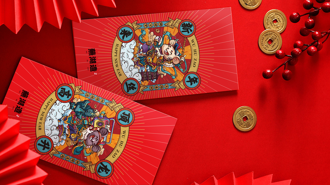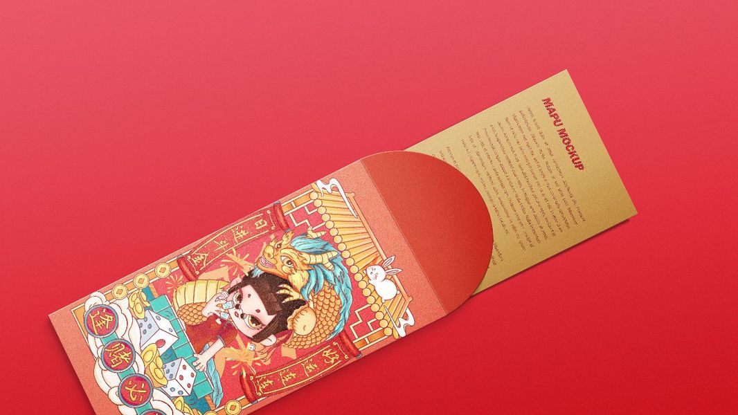 国潮麻将插画 兔年手机壳设计红包封面设计