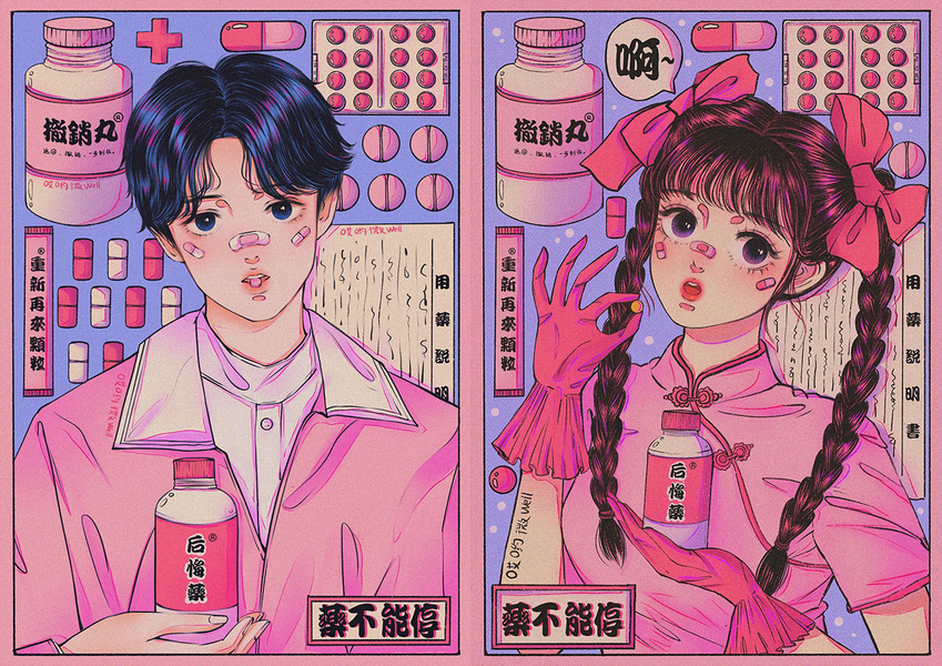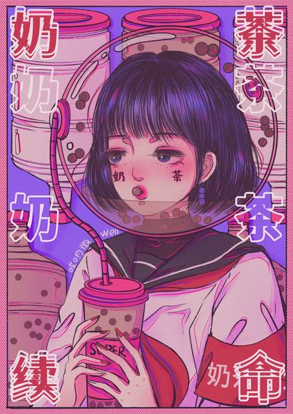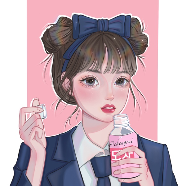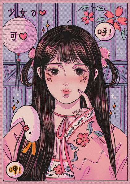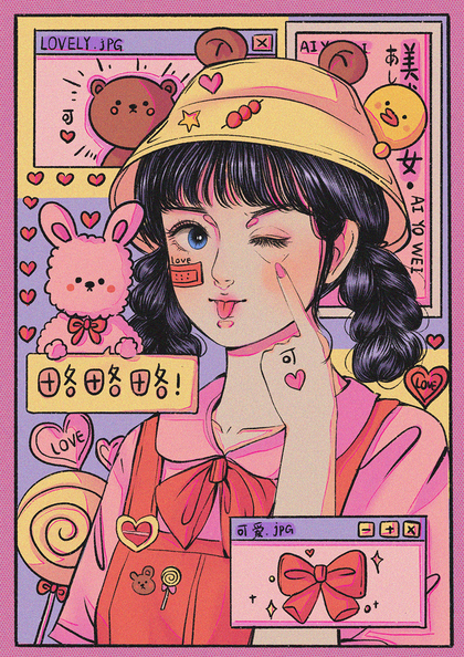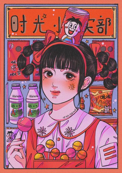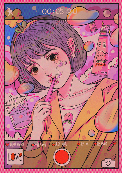 插画丨绘画丨糖果色甜系女生插画,少女感十足