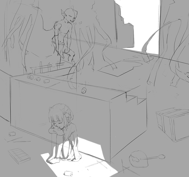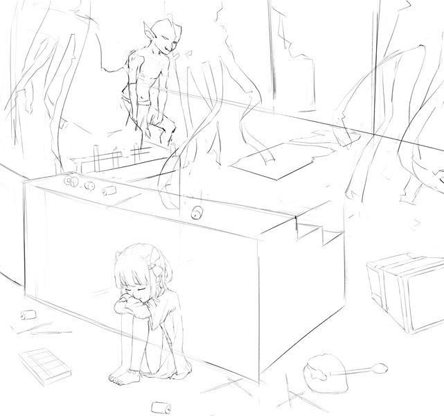 暗黑系,暗色调室内卡通画手绘(步骤简图)