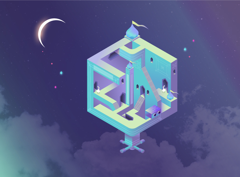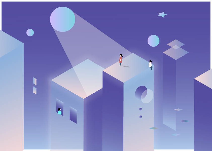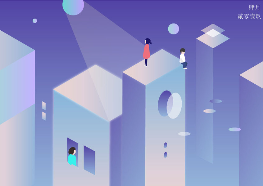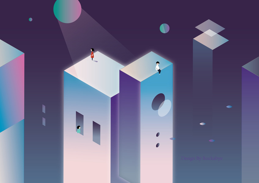 夜空城市人物插画