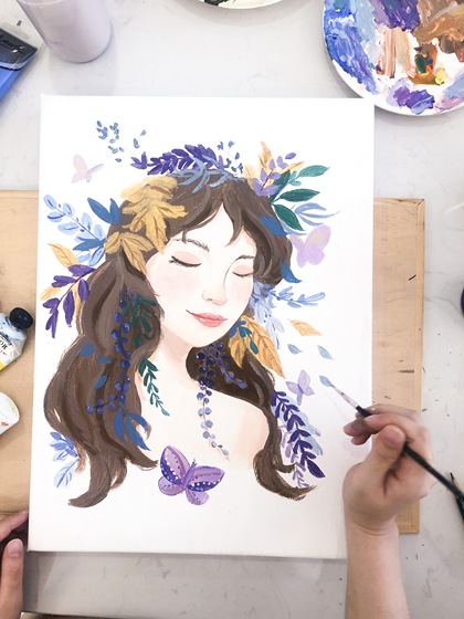 【手工粘土+手绘丙烯画】花与少女 紫色💜