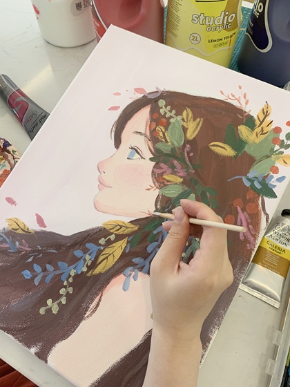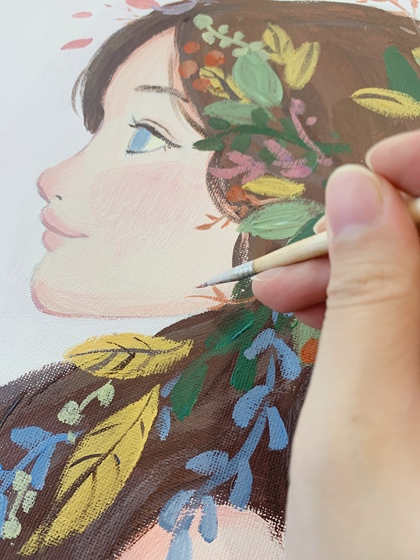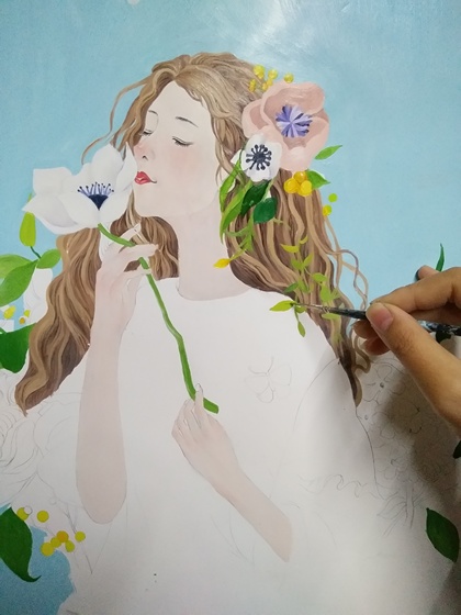 【手工粘土+手绘丙烯画】花与少女 粉🌸