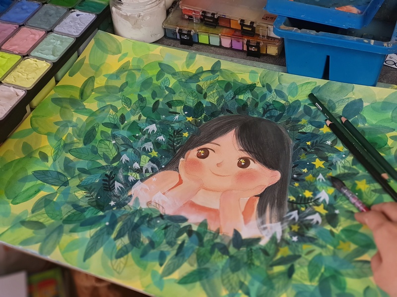 原创插画静待花开
