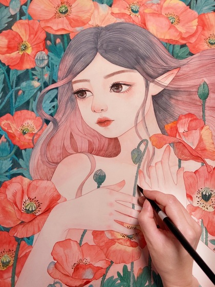 水彩美少女(九月摸鱼)