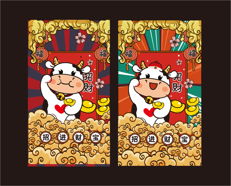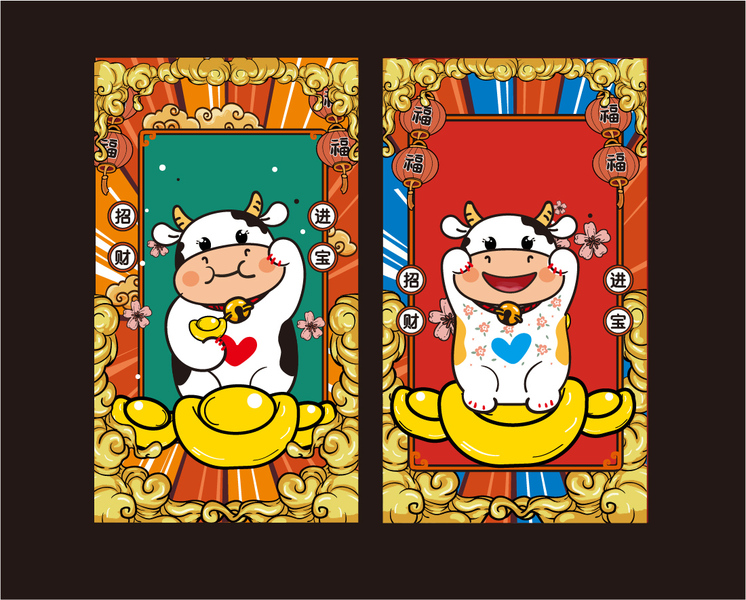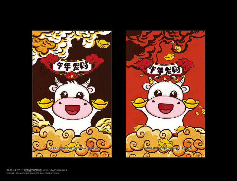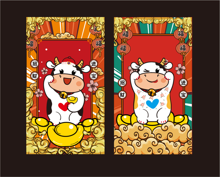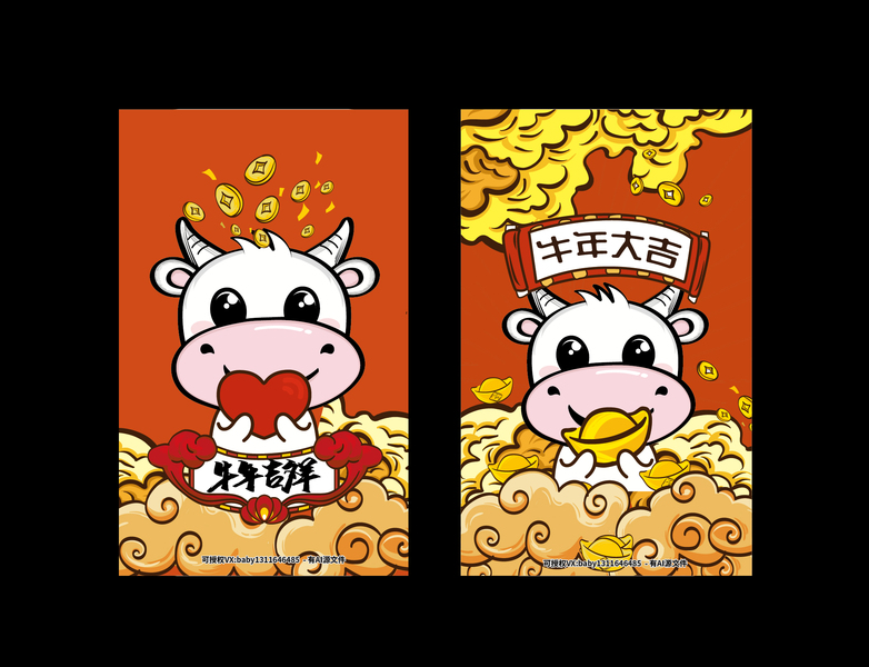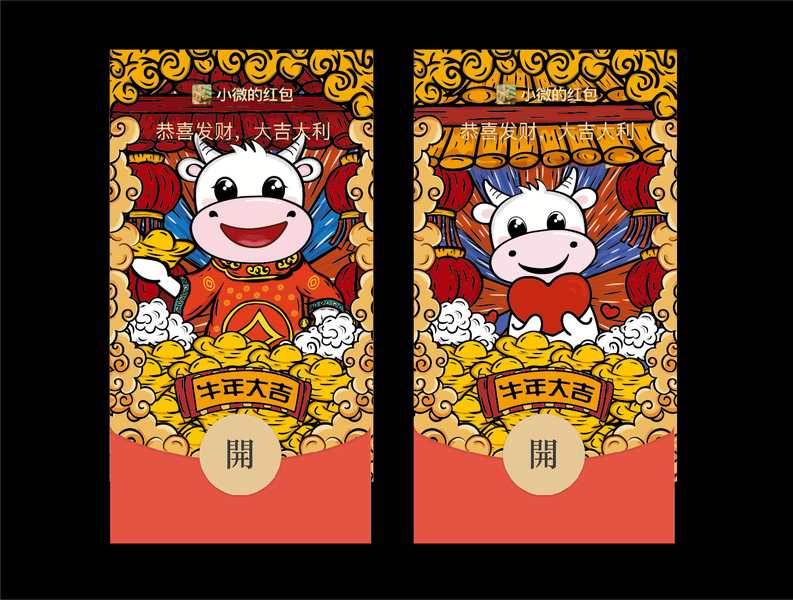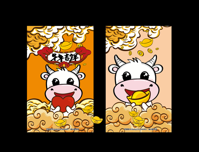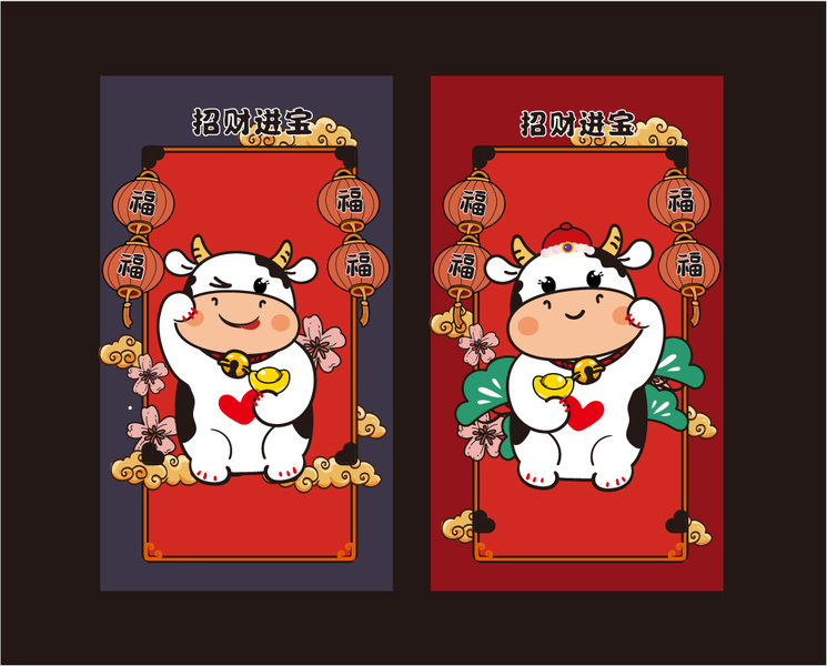 微信红包封面 招财奶牛插画手机壳已申请版权