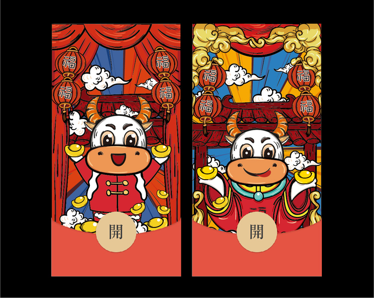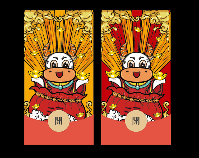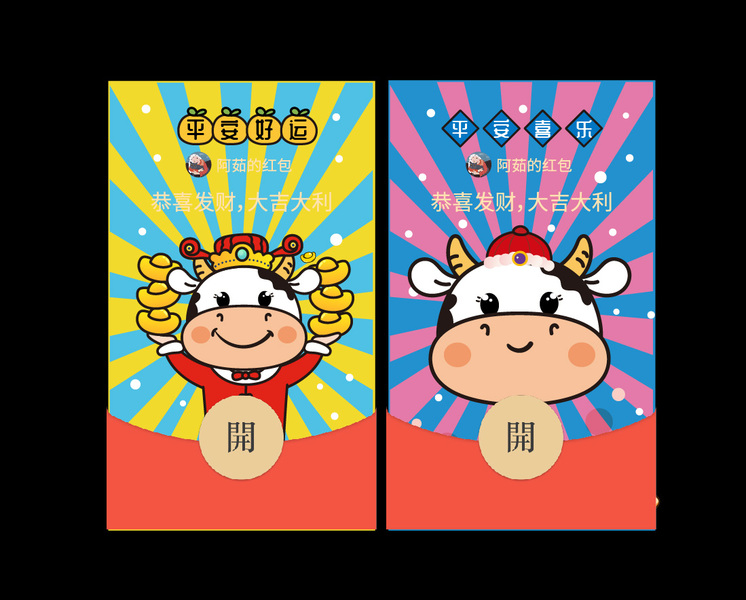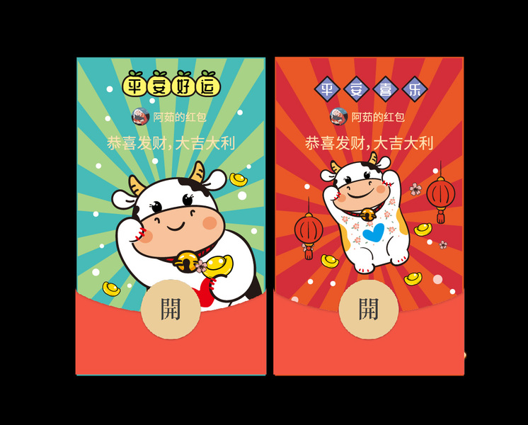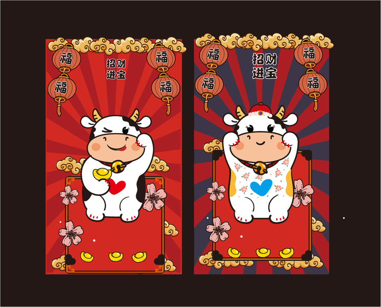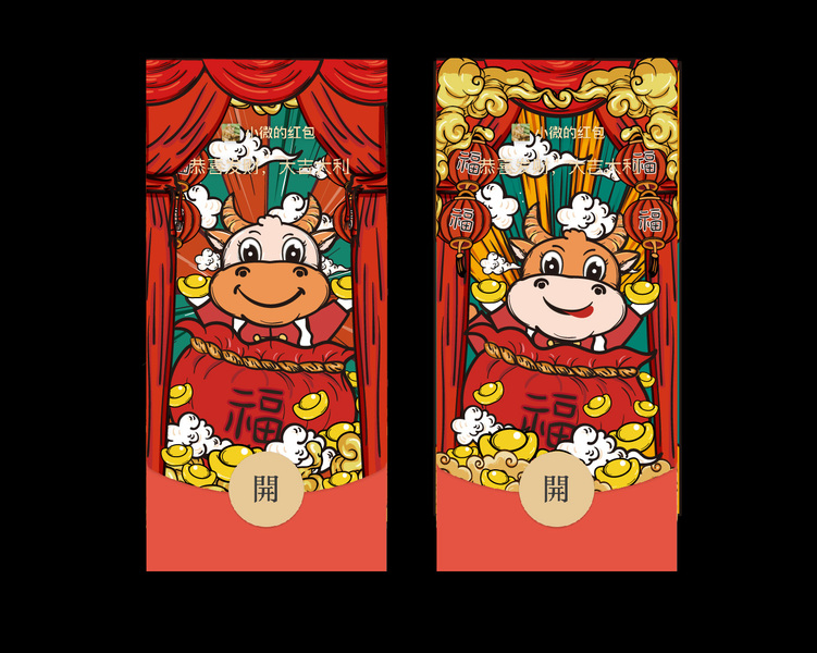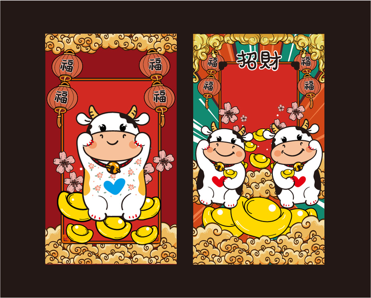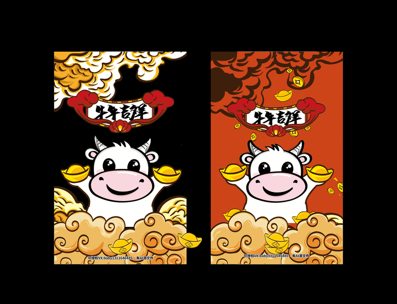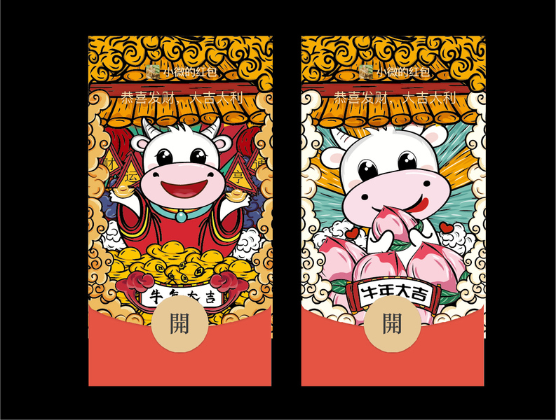 微信红包封面 招财奶牛插画手机壳已申请版权
