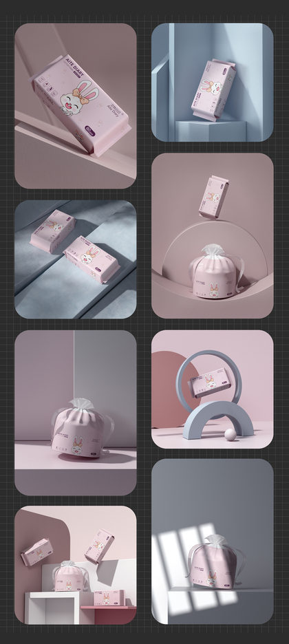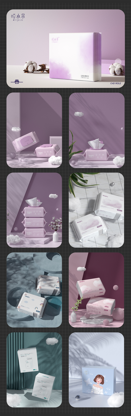 棉柔巾/卫生巾/湿巾/洗衣液等包装2020渲染合集
