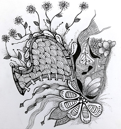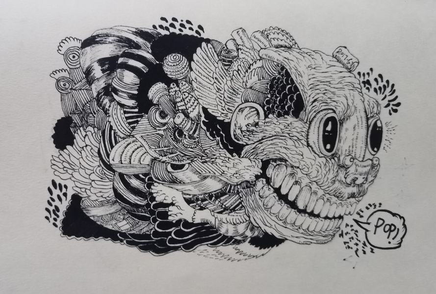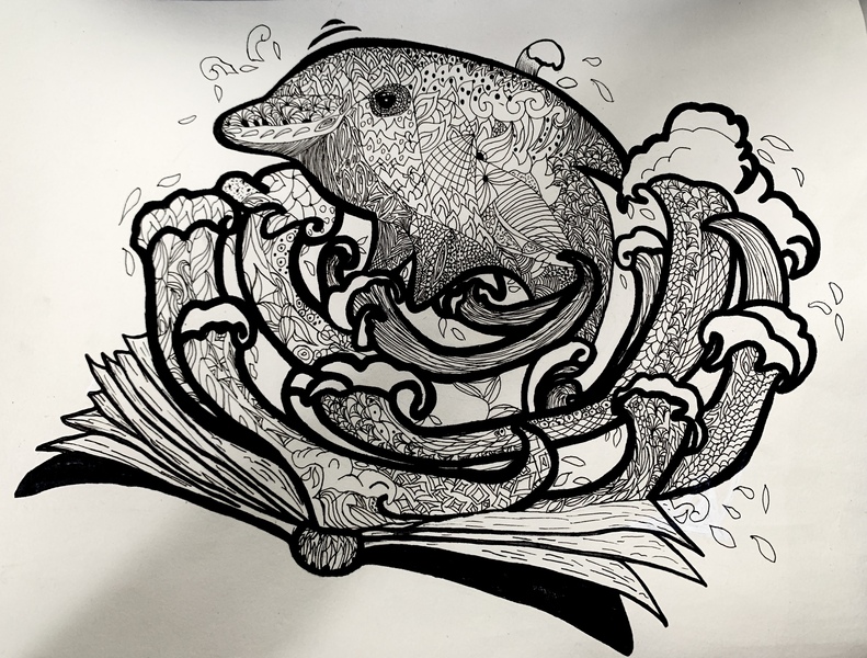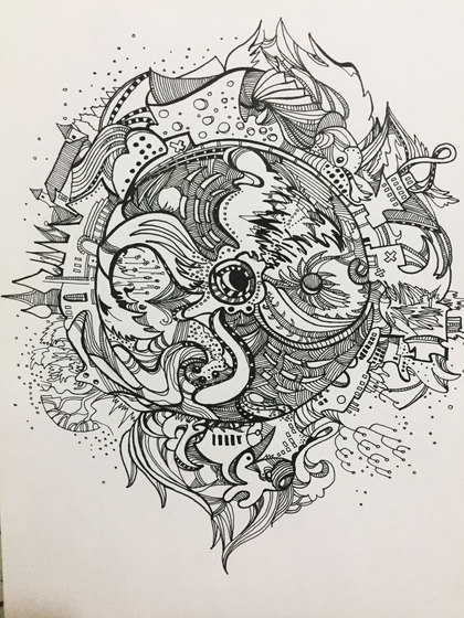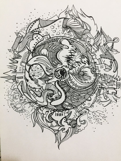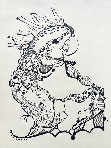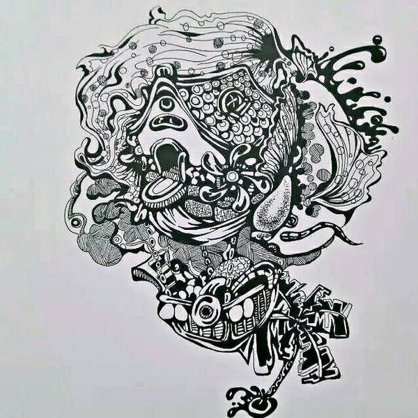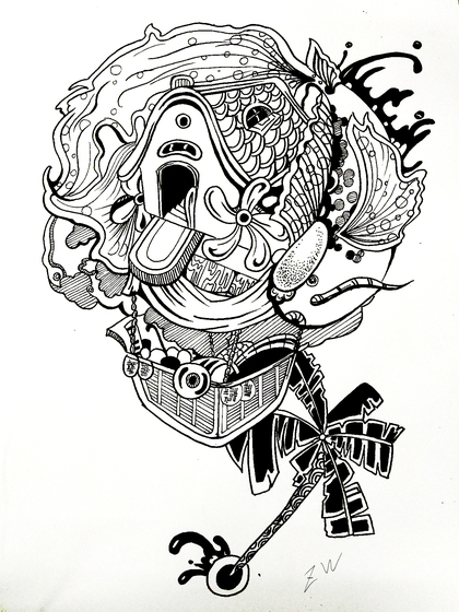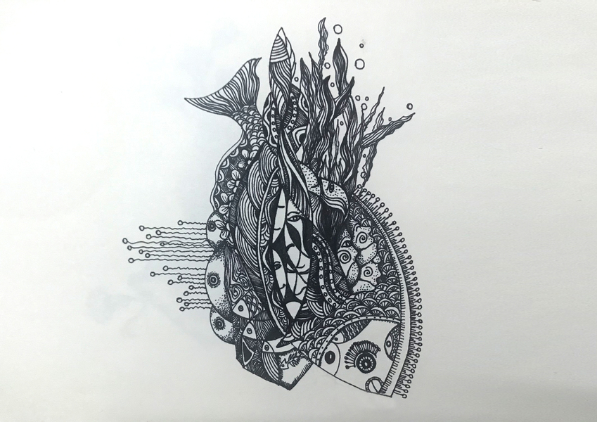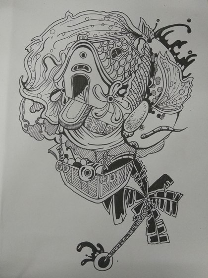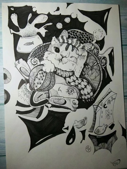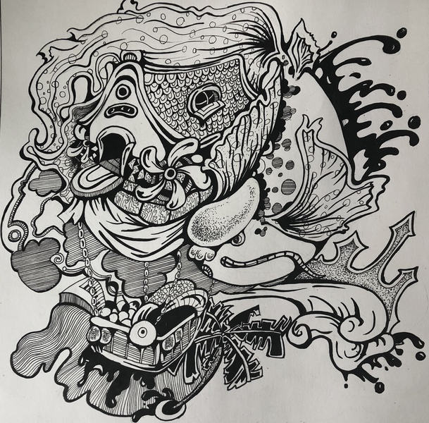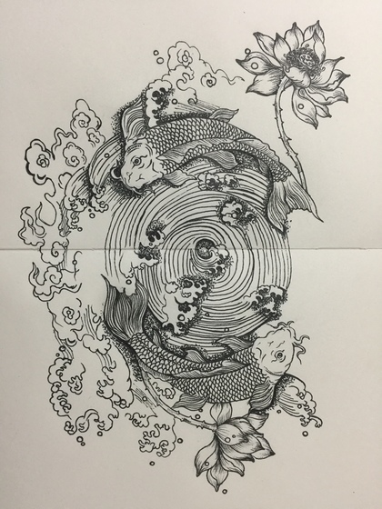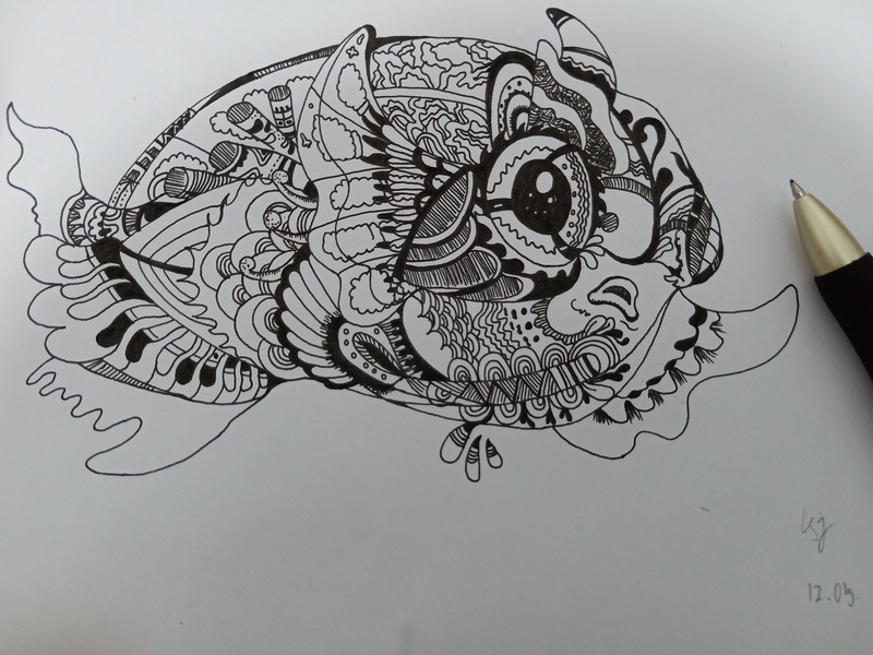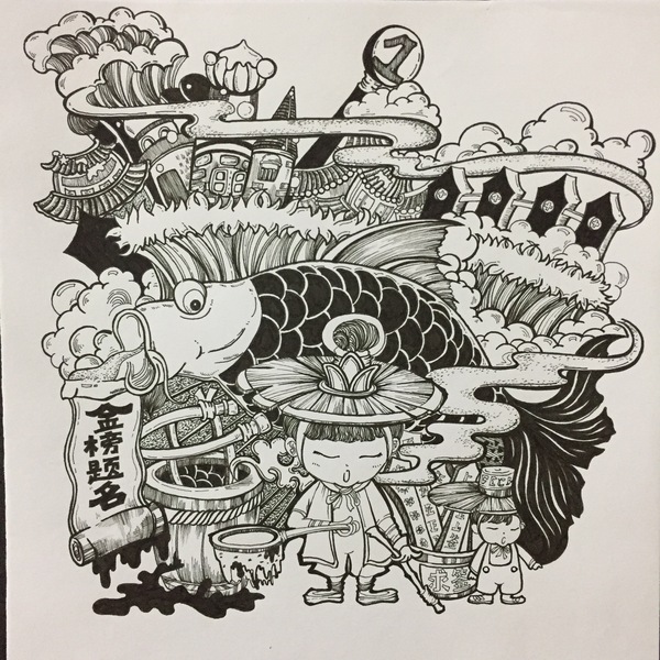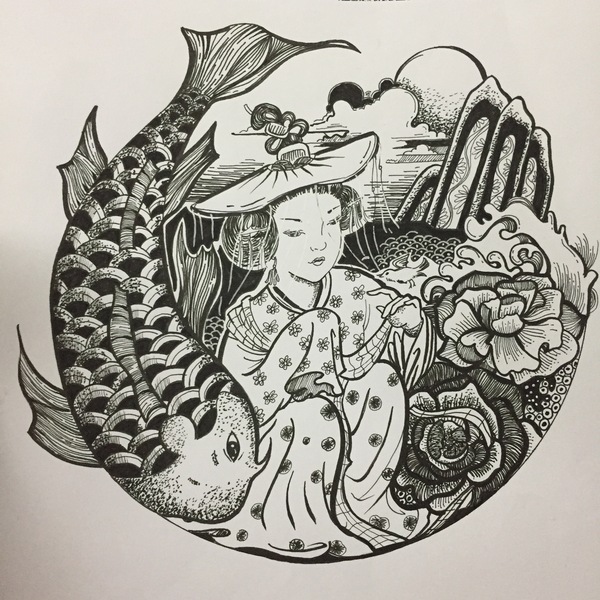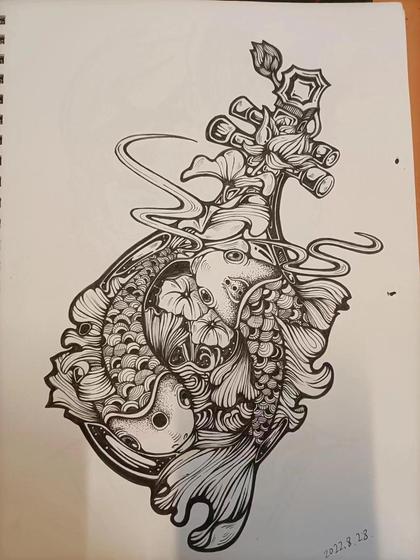 纯手绘锦鲤 年年有鱼 黑白画(临摹+改版)