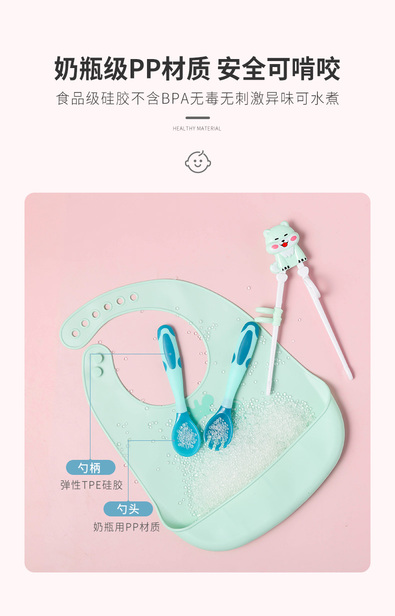 电商详情,母婴宝宝学吃饭训练婴儿勺辅食勺叉餐具套装