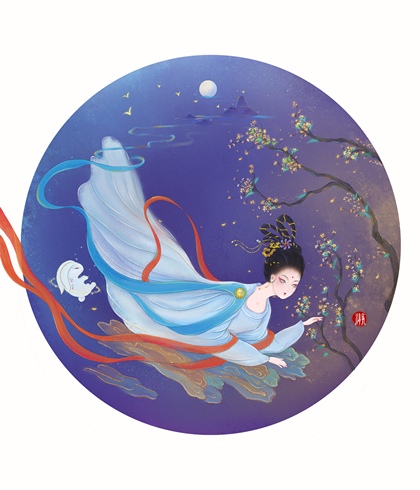 国潮插画~中秋月圆夜(玉兔、琵琶)